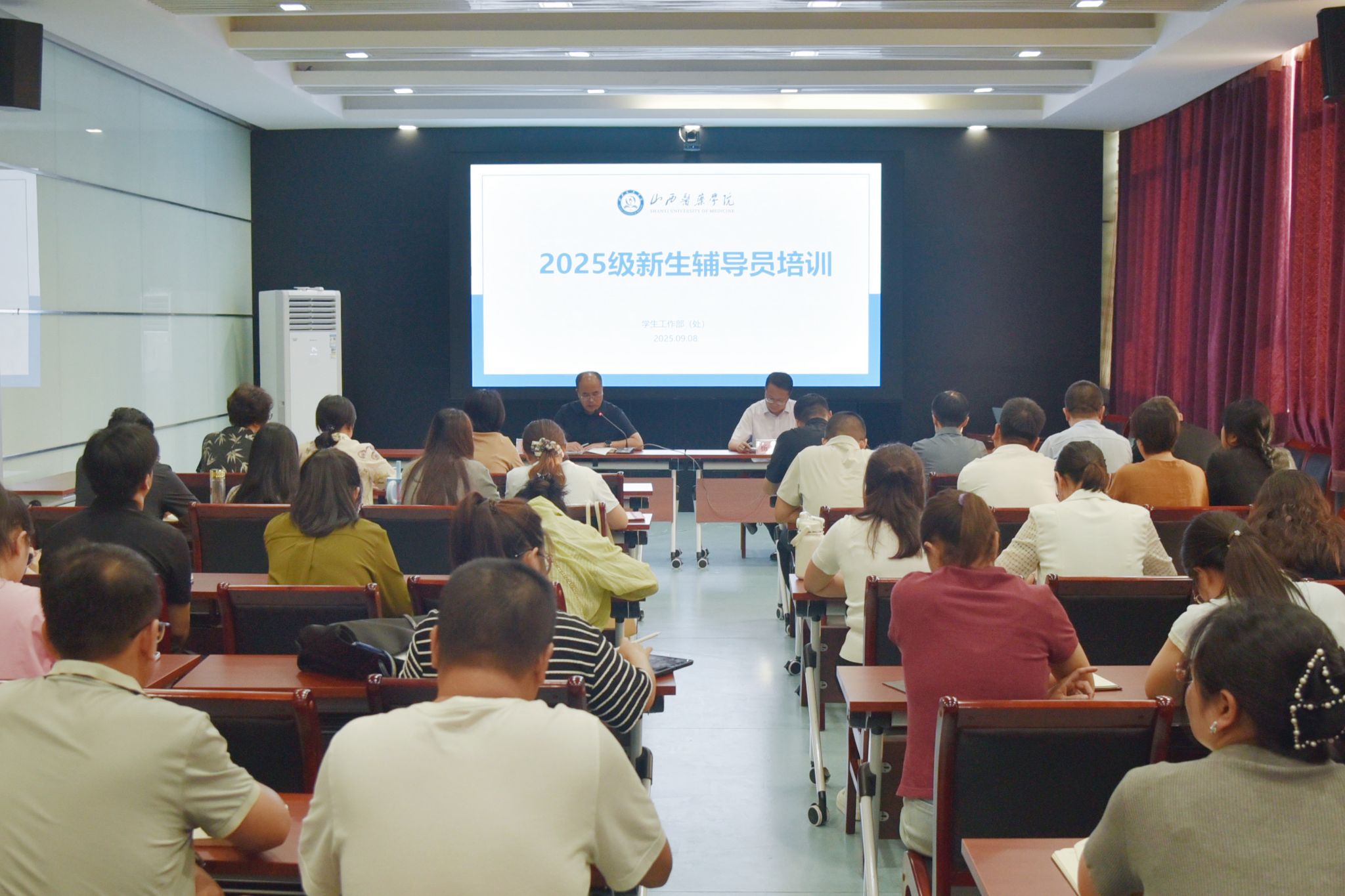 学生处部(处)副部(处)长门杰、医学影像系辅导员成永红、公寓管理科科长张军、临床医学系辅导员李晨、心理健康教育与咨询中心主任郭志刚、生涯规划与就业指导中心主任田兴峰、学生资助管理中心权迪等8名学工口教师,重点围绕迎新流程及公寓安排、新生适应性教育、生涯规划与职业引导、学生干部选拔与培养、班级文化氛围营造、学风建设、心理健康引导与资助育人等内容,通过政策解读、案例剖析与实践指导相结合的方式系统讲授,助力新生班级辅导员提升政治素养、夯实业务能力、开阔工作思路。