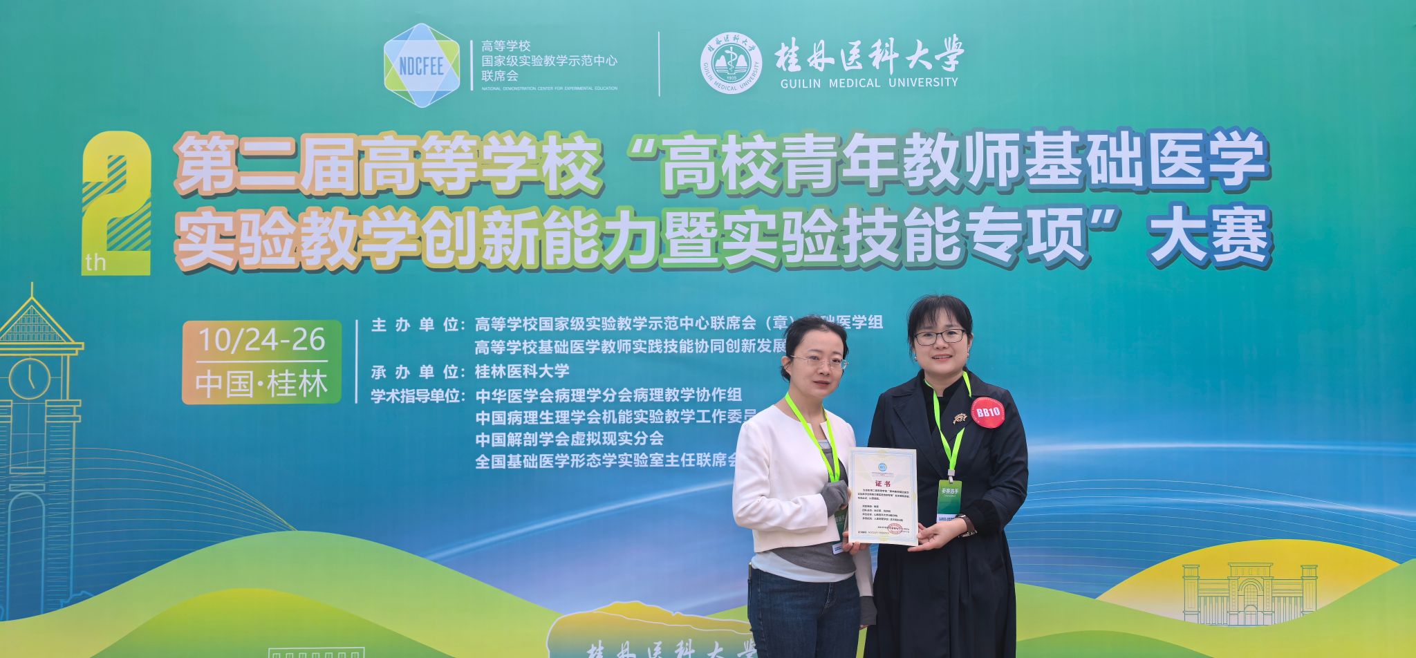 10月26日,第二届全国高等学校“青年教师基础医学实验教学创新能力暨实验技能专项”总决赛在桂林医科大学圆满落幕,SUNBET基础医学部病理学教研室徐义荣教授、闫文丽老师组成的参赛团队喜获银奖。