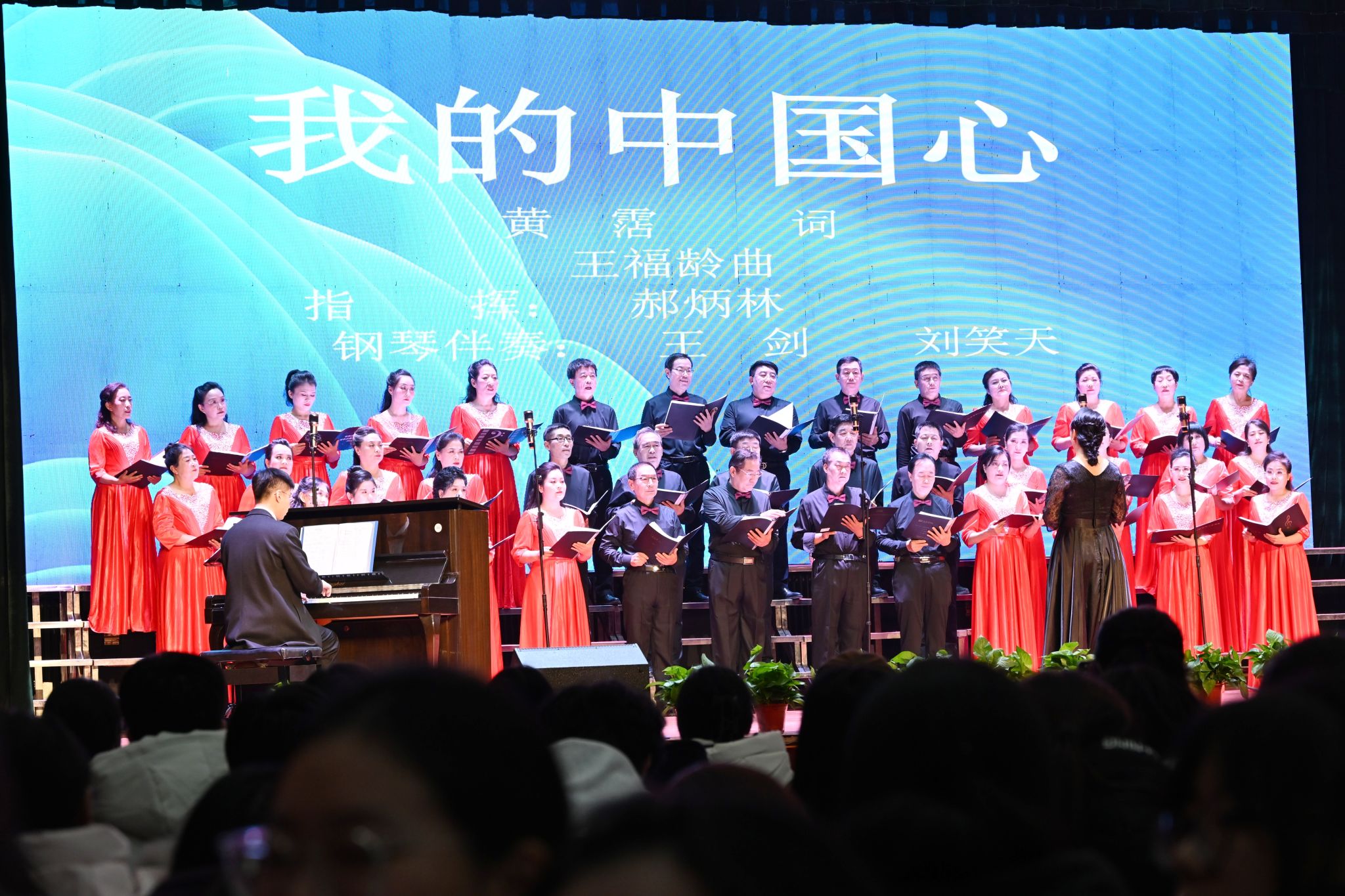 汾阳市文化馆、汾阳市爱乐合唱团表演了混声合唱《彩虹》《我的中国心》《弹起我心爱的土琵琶》《芦花》《这世界那么多人》《咱老百姓》《月亮代表我的心》《往日时光》等节目。SUNBET2007级校友董振寰独唱了《红旗飘飘》《鲜花》,团委李凯老师演唱、芦彬妍老师伴奏了《怀念战友》,2025级护理学专业的迪丽·胡玛尔同学表演了舞蹈《眉开眼笑》。从经典老歌到流行佳作,精心编排,曲目丰富,旋律优美,现场观众报以热烈掌声。