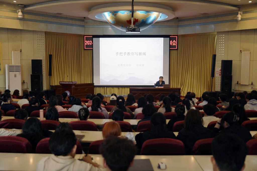 为提高团学宣传工作水平,提升学生干部新闻写作能力,3月27日下午,校党委宣传部、团委在敦学楼学术报告厅联合举办了2024年全校团学干部新闻写作能力专题培训会,培训会邀请校党委宣传部副部长双永青副编审进行了培训。团委书记王建荣、副书记王慧勇、张超,党委宣传部理论科科长武霞及相关老师,校、系两级学生会所属部门及社团负责人,校党委宣传部宣传阵地学生编辑近300人参加了培训。校团委美育教研室主任董婧妍主持了培训会。