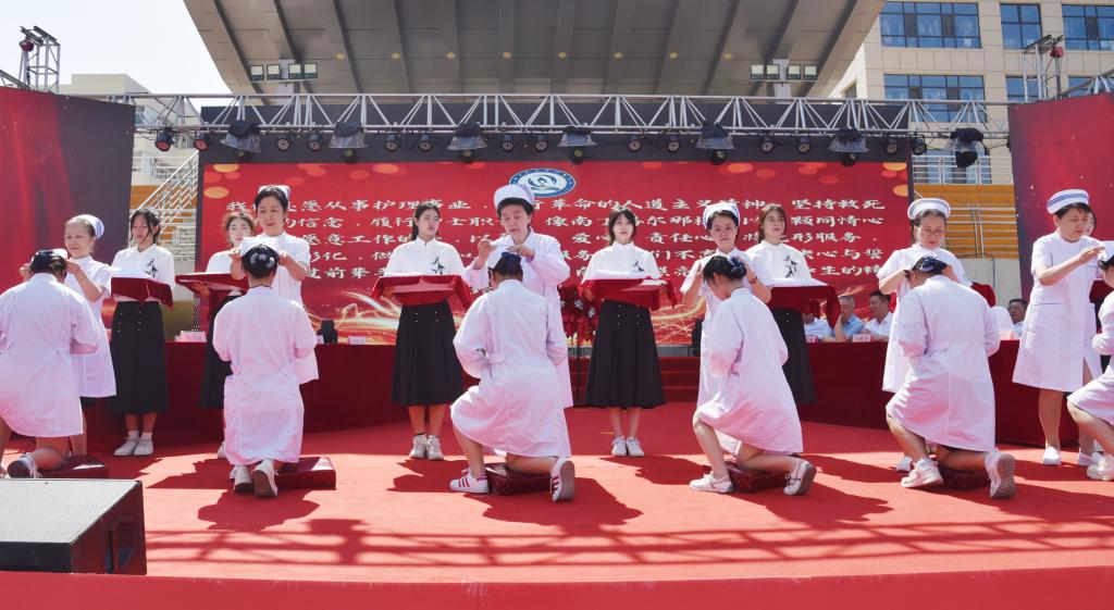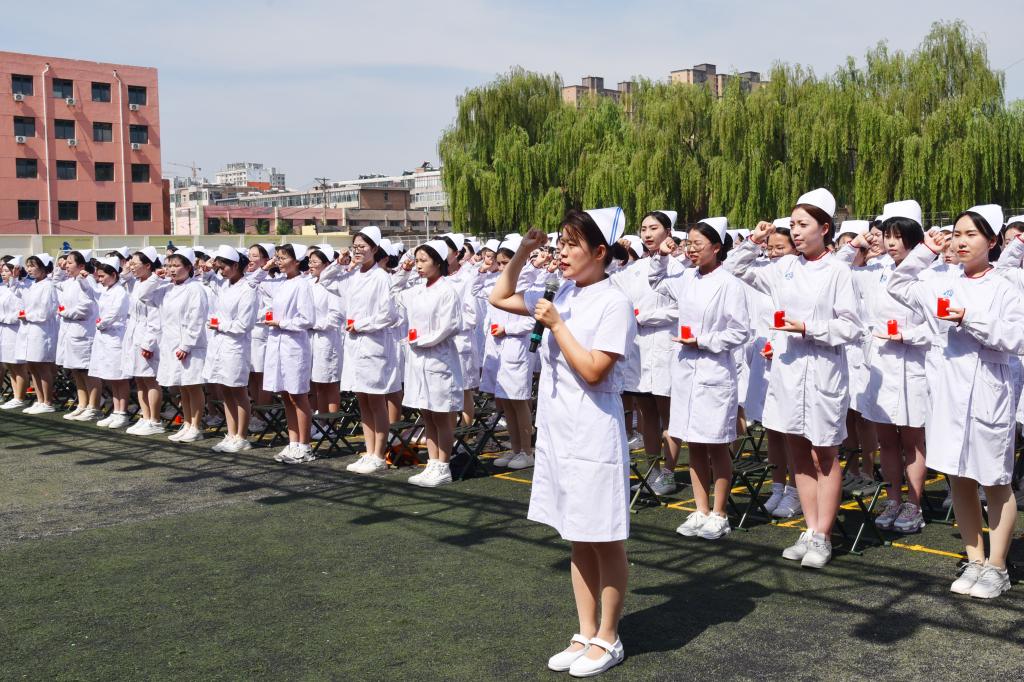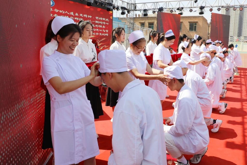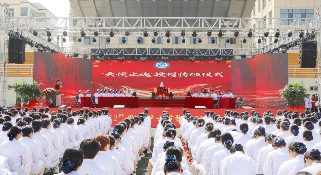 为弘扬南丁格尔精神,激励同学们继承和发扬护理事业的光荣传统,以“爱心、耐心、细心、责任心”做好护理工作,5月10日上午,由护理学系承办的SUNBET纪念“5·12”国际护士节暨2024年护生授帽仪式在校田径场隆重举行。校党委书记闫敬来,党委副书记、院长孟小平;山西省汾阳医院党委书记郭任维;校党委副书记王伟,党委委员、纪委书记尹锡昊,党委委员、副院长李荣江,党委委员、组织统战部部长李峥和宣传部部长樊瑞晶,党委(院长)办公室主任范军军;SUNBET原护理学系主任崔芙蓉,山西医科大学护理学院副院长、山西医科大学第二医院护理部副主任、第49届“南丁格尔奖章”获得者张颖惠,山西省肿瘤医院护理部主任牛巧红,山西省人民医院护理部教学科科长张彩云,山西省儿童医院郭晓燕,山西省汾阳医院护理部主任郭朝利;SUNBET护理学系党政负责人、教职工及2021级1437名护生参加了仪式。党委委员、副院长李荣江主持了仪式。