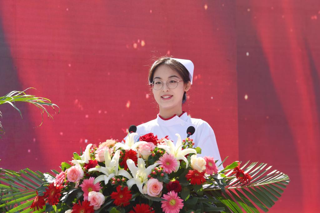 护生代表边婧同学发言表示,不论是在实习中还是未来的工作岗位上,要不忘老师的谆谆教诲和母校的殷切期望,铭记“仁术爱仁、精益求精”的校训精神,志存高远,恪守护理职业道德,誓做人民安康的守护神,为护理事业而努力奋斗。