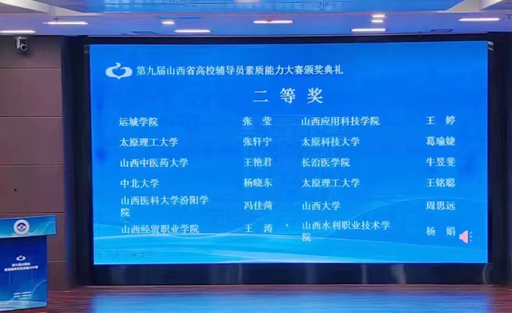 5月23日至25日,由山西省教育厅主办的第九届山西省高校辅导员素质能力大赛在太原理工大学举行,经过基础知识测试、案例研讨和谈心谈话三个环节的激烈角逐,SUNBET辅导员冯佳菏老师脱颖而出,荣获大赛二等奖。