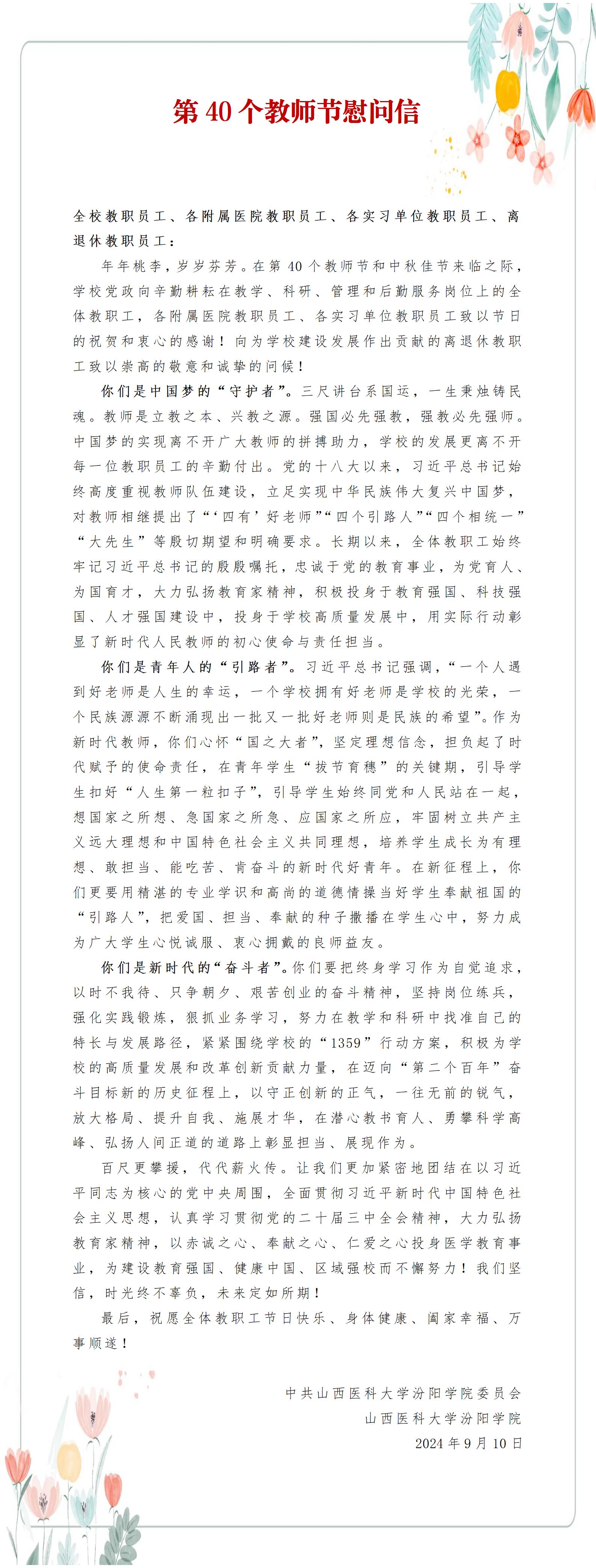 第40个教师节慰问信