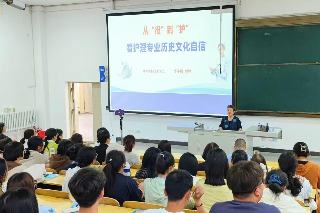 为了帮助新生了解护理学发展史,增强专业自信,激发同学们对护理专业的学习动力,9月23日上午,护理学系特邀第43届国际南丁格尔奖章获得者姜小鹰教授作《从“役”到“护”——看护理专业历史文化自信》专题讲座。本次讲座通过线上线下相结合的方式进行,护理学系党总支书记武小丽主持,护理学系主任李红梅、党总支副书记申涛、副主任申华平、分团委书记康智芳,教师、新生辅导员、学业导师以及大一新生参加。