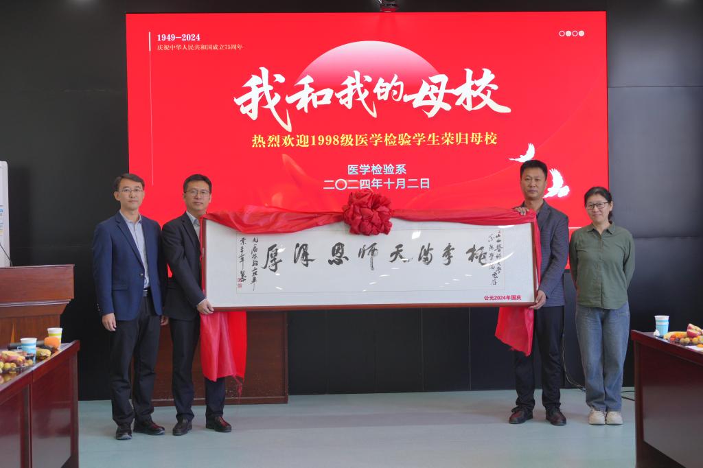 跨越山海,情系母校。近日,来自全国各地的1998级检验三班校友们重聚母校。为迎接远方的学子回家,医学检验系举办了以“我和我的母校”为主题的返校活动。检验三班第一任班主任、护理学系主任李红梅,第二任班主任、教学督导委员会主任委员、原医学检验系主任刘荣臻,校团委书记王建荣,医学检验系党总支书记李元宏、主任张晓延及师生代表参加活动,检验三班班长南洋主持了活动。