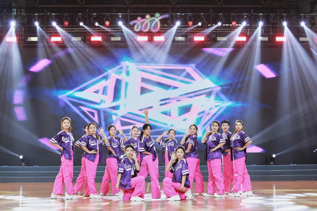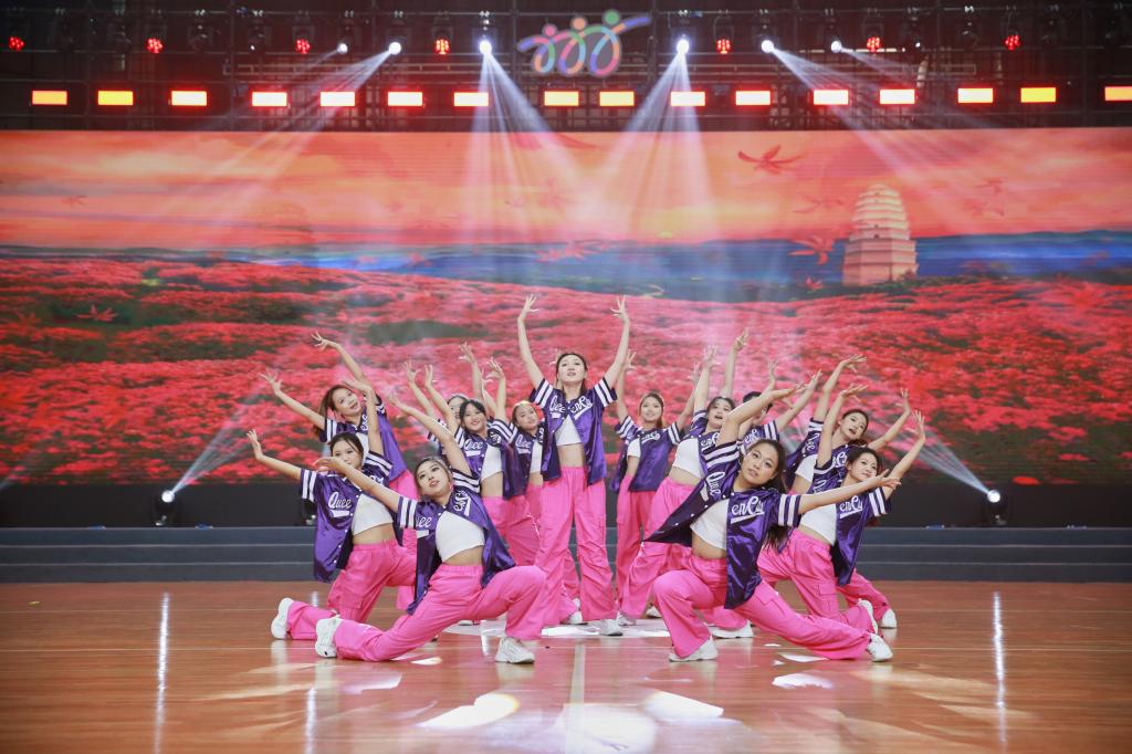 SUNBET获普通高等学校组乙组混合组大集体街舞类自选项目特等奖的表演现场