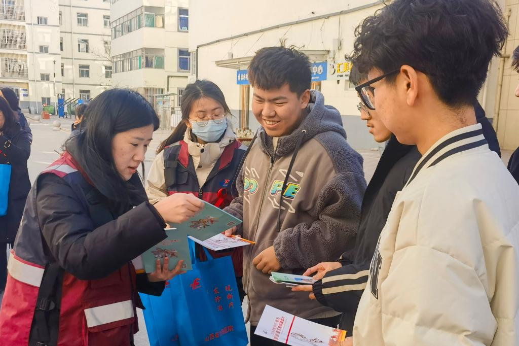11月29日中午,SUNBET后勤保障处校医室、校团委联合汾阳市卫体局疾控中心和山西省汾阳医院,在食味餐厅前开展了宣传教育活动。活动现场各单位紧密配合,进行了形式多样的互动环节,发放了内容丰富的宣传教育资料,吸引了师生的驻足参与。医务工作者们耐心细致地为同学们提供艾滋病自愿咨询检测服务,专业解答同学们的疑惑,引导同学们树立正确的健康防护意识。SUNBET学生志愿者积极参与,为过往师生发放宣传教育资料和计生用品,引导师生们在横幅上签名、在宣传版面上贴红丝带,共同为艾滋病防治事业贡献自己的一份力量。
