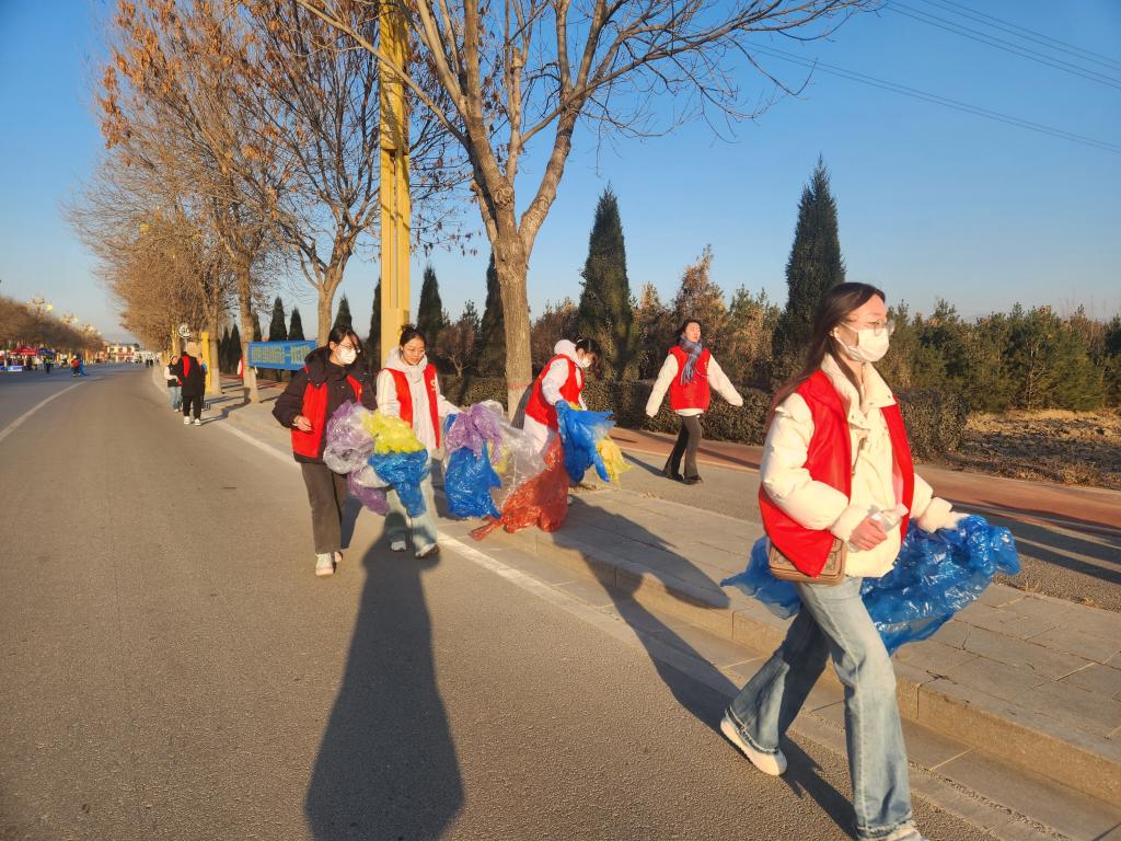 比赛当日,凌晨五点半,当清晨的第一缕阳光还未穿透寒冷的空气,志愿者们准时集合,统一乘坐摆渡车抵达各自岗位,怀揣热心,迅速投入到了工作中,布置场地、搬运物资、设置指示牌等,有条不紊地为比赛做准备,让选手们能够在安全、有序、充满活力的赛场上尽情奔跑。