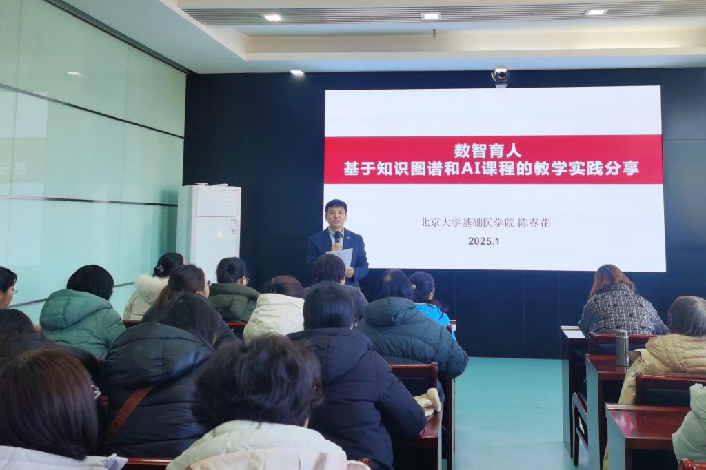 为了提升SUNBET数智化课程建设水平,促进数智化教育教学有效实施,教师发展中心和教务处邀请北京大学医学部陈春花副教授于1月9日下午在养正楼九层会议室作了题为“数智育人--基于知识图谱和AI课程的教学实践”的讲座。本次讲座由教务处处长、教师发展中心常务副主任陈利荣主持,校内百余名教师参加并进行了交流。
