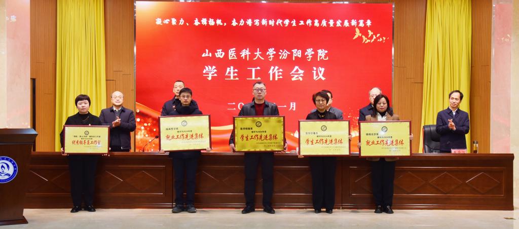 校党委副书记王伟宣读了《关于表彰2024年度“学生工作先进集体”“优秀辅导员”等的决定》。与会校领导为学生工作先进集体、就业工作先进集体、优秀辅导员工作室、优秀辅导员、就业工作先进个人等颁发了奖牌和荣誉证书。