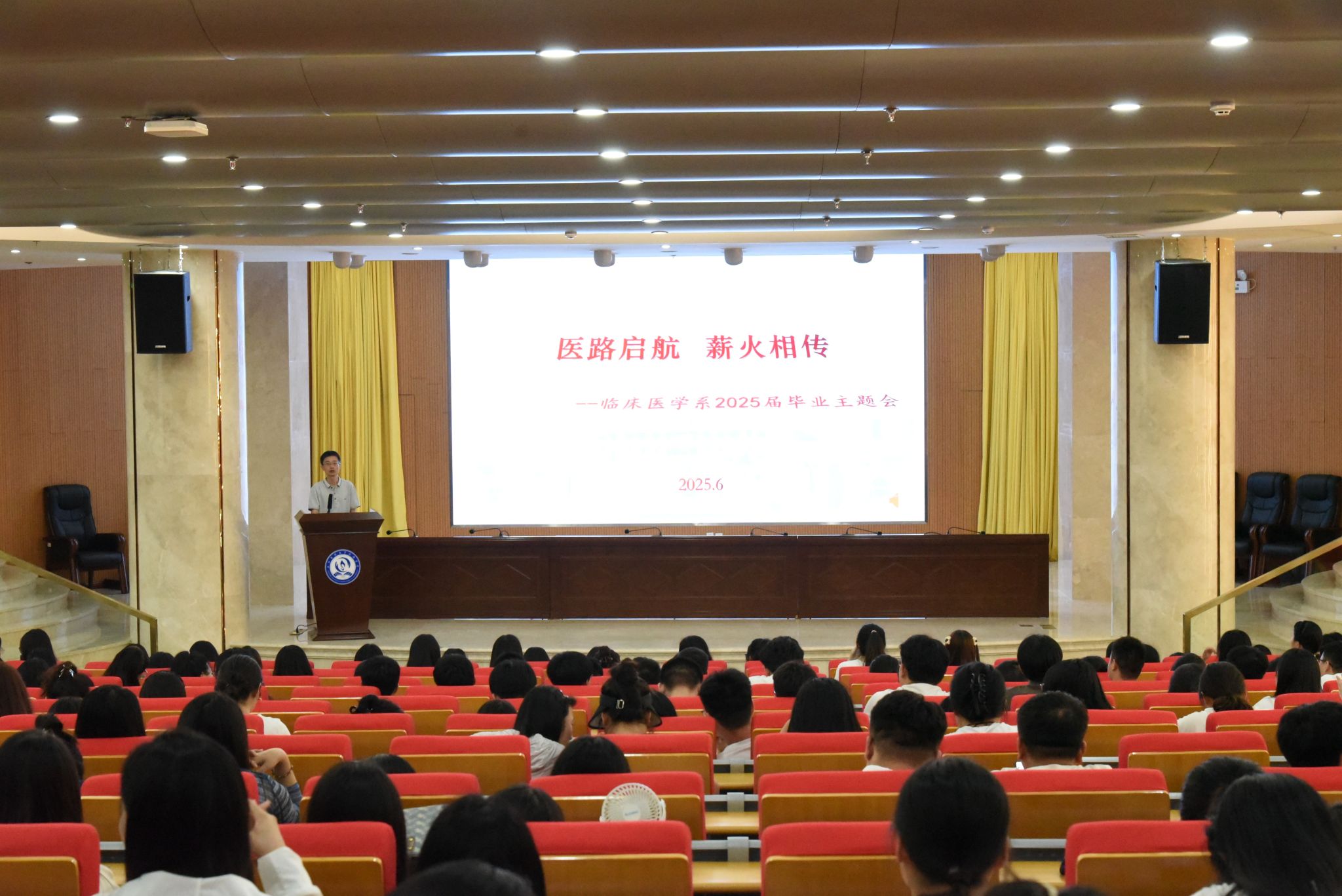 6月26日,临床医学系在图书馆学术报告厅举行了“医路启航、薪火相传”毕业主题教育会。临床医学系领导班子、全体教师、辅导员、学业导师及360名2025届毕业生出席,系党总支副书记郭晋主持。