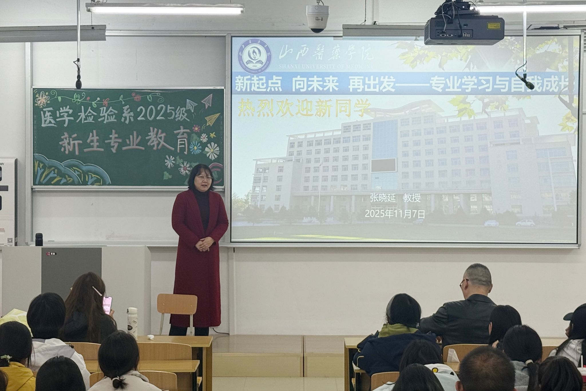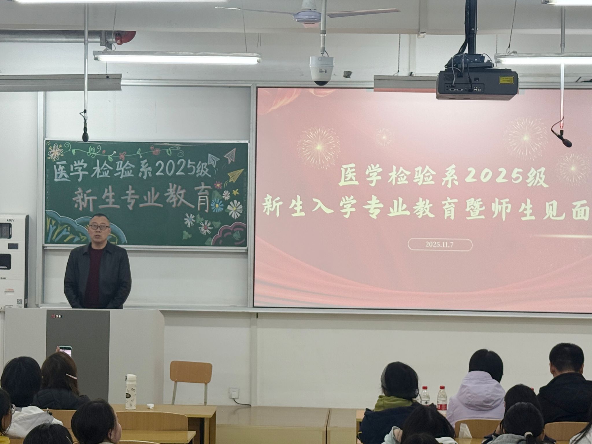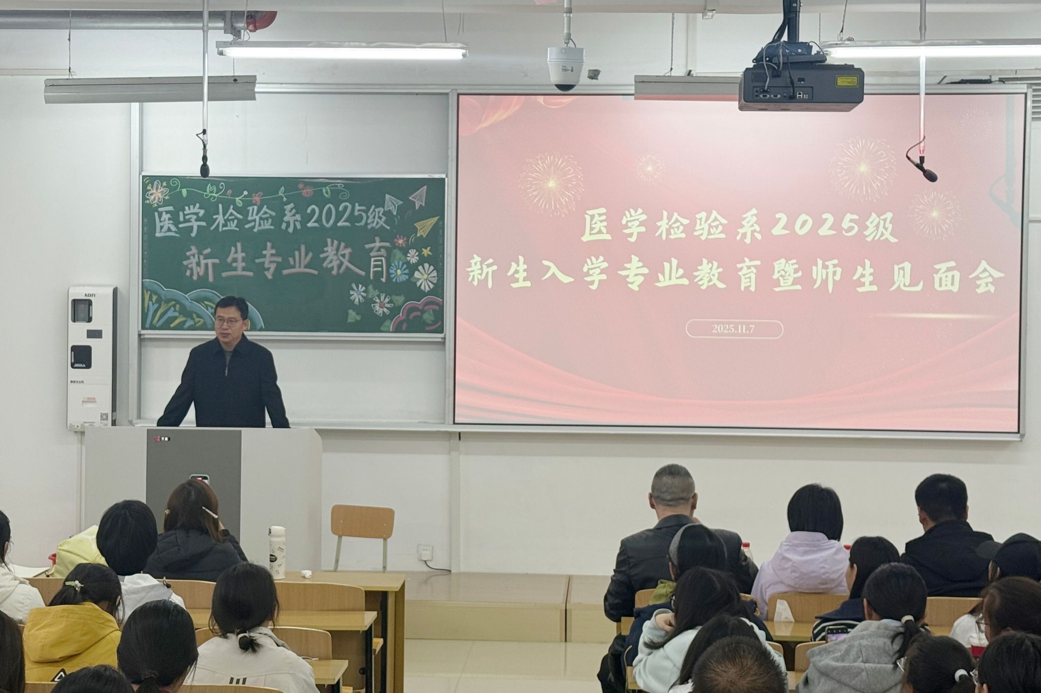 为帮助2025级新生明晰行业发展动态、锚定职业能力方向,尽快适应大学生活,医学检验系于11月7日开展了新生入学专业教育活动。医学检验系党总支书记李元宏、主任张晓延、副书记雷亚旭、副主任张笑添、副主任程凯及全体新生班级辅导员参加了活动。