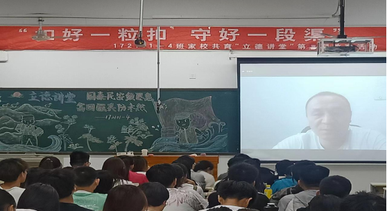5月25日晚,基础医学部医学实验技术专业172101-4班于知新楼11教室开展“扣好一粒扣,守好一段渠”——家校共育“立德讲堂”第三期教育活动。班主任王瑞芳和172101-4班全体同学现场参加了本次活动。活动由辅导员李晨主持。