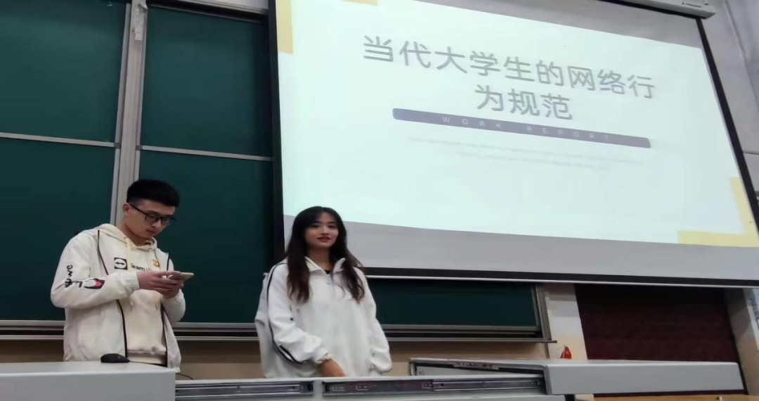 随后,心理委员李泽、荣乙霖向大家作案例分享,向我们分享了一个催人警醒的案例:四川一飞行员由于在大学期间发表不当言论“亵渎历史”,最终被停职调查,这就告诫我们在网络上发表不当言论、扭曲事实终会受到惩罚。此外,网络谣言、侮辱谩骂的现象是网络大时代下存在的显著问题,一些人站在舆论制高点散播谣言,甚至实施人身攻击,从而对对社会及他人造成不利影响,这些都是不可取的。因此,我们应该学会明辨是非,禁止散播谣言,不做舆论的棋子,同时要宣扬正确价值观,学会文明用语,禁止人身攻击,让网络不再乌烟瘴气,还网络一片清明。