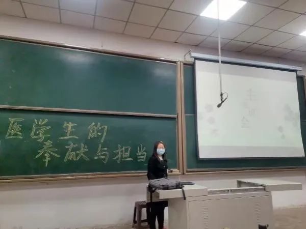 习近平总书记曾说:“青年兴则国家兴,青年强则国家强。”新时代医学生是健康中国战略的践行者,承载着国家医学事业发展的未来。为培养医学生奉献意识与担当意识,61911-18班于2022年3月28日举行“医学生的奉献与担当”的主题班会活动。此次班会,由组织委员高艳红同学主持,班主任郭志刚老师,辅导员双内青老师线上参会。各班同学代表遵守(按照)疫情防控原则,有序入座线下参会,其余同学线上参会。