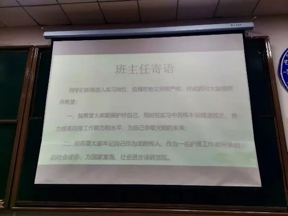 班主任郭志刚老师,辅导员双内青老师,也对同学们寄予了深切期望。郭志刚老师说:“我希望大家牢记自己作为龙的传人,作为一名护理工作者所承担的社会使命,为国家富强、社会进步添砖加瓦。”辅导员双内青老师说:“作为一名在校的医学生,我们要好好学习专业知识,提升专业素质,为祖国的医学事业努力奋斗,增强奉献意识,敢于担当,迎难而上,在奋斗中绽放青春的光芒,为国家和人民的健康做出自己力所能及的贡献。”高艳红同学对此次活动进行了总结:身为医学生的同学们,只有做到坚定理想信念,提升实践能力,提升学习能力,提高专业素养,才能更好地做到担当作为!随后,她连同线上线下参加班会的同学们重温了医学生誓词,在同学们洪亮而坚定的宣誓中,班会进入了尾声。