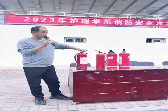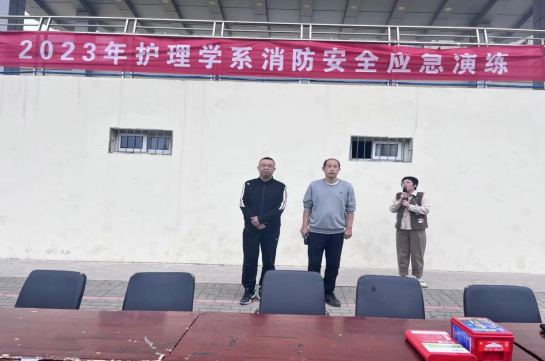 消防安全是我们生活中不可忽视的一个重要问题。每年,我国都会发生大量的火灾事故,给国家和人民带来了巨大的财产损失和生命威胁。为了全面遏制消防安全事故的发生,提高师生员工在紧急情况下的逃生自救能力,9月23日下午5点,护理学系特别邀请学院消防安全科科长梁庆刚老师给大家做消防安全教育并指导护理学系2023年消防安全应急疏散演练。护理学系党总支副书记、62301-10班辅导员申涛,护理学系团委书记、62220-28辅导员康智芳及一年级新生参与本次活动。