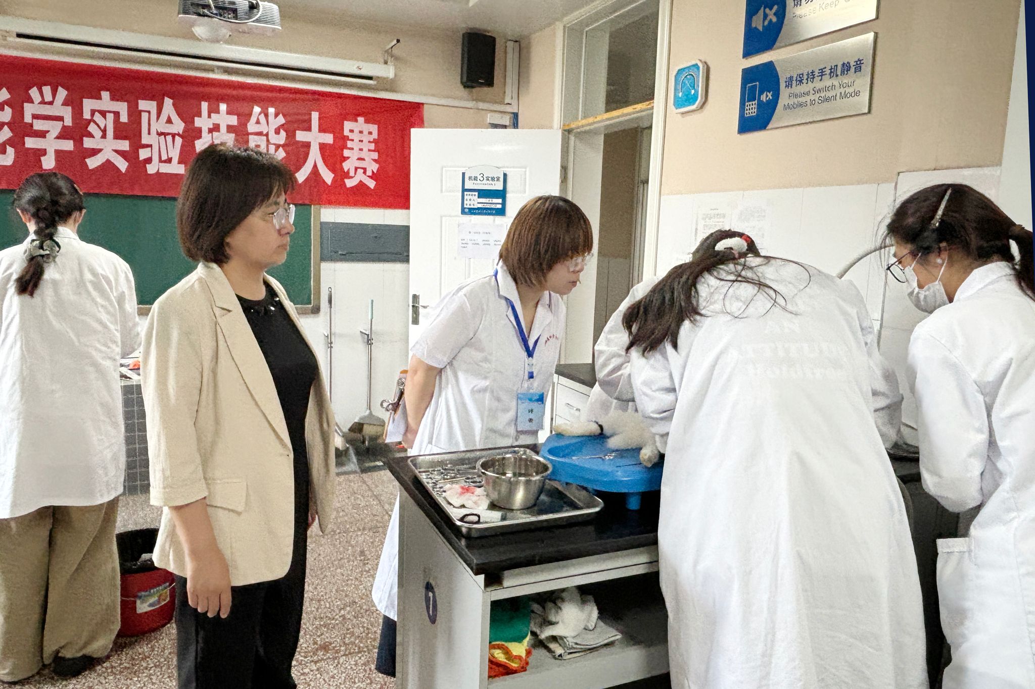 上午8时,基础医学部党总支书记姚万军、副主任兰冰洁和李卫萍,成都泰盟软件公司市场部经理刘学莅临决赛现场观摩。评委团队由生理、药理、病生教研室及机能实验室的12位老师担任并采用双人双评机制。最终结合参赛同学的笔试与技能操作成绩,评出一等奖2组、二等奖4组、三等奖8组、优秀奖10组。