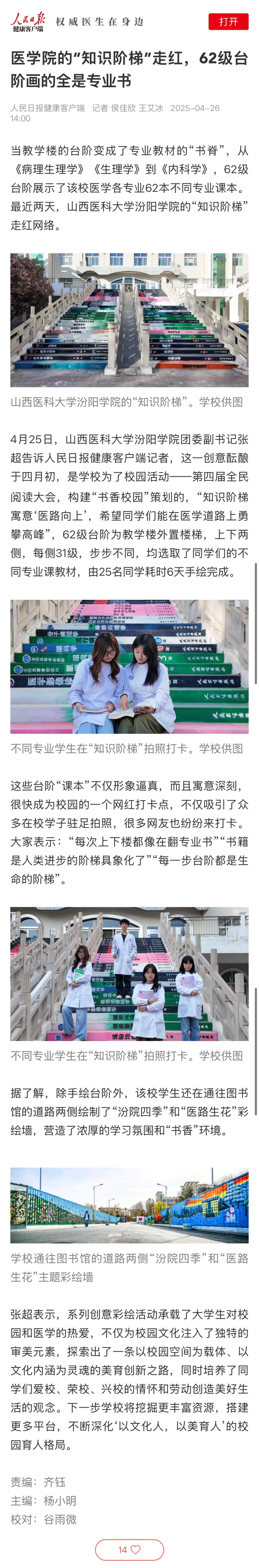 医学院的“知识阶梯”走红,62级台阶画的全是专业书