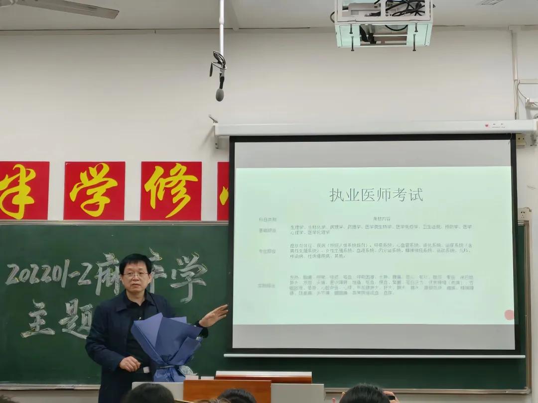郭全虎副主任介绍了麻醉学开设情况,强调麻醉医学在临床学科中不可或缺的重要地位,鼓励学生们要珍惜大学生活,努力学习专业课程,提高自身能力。