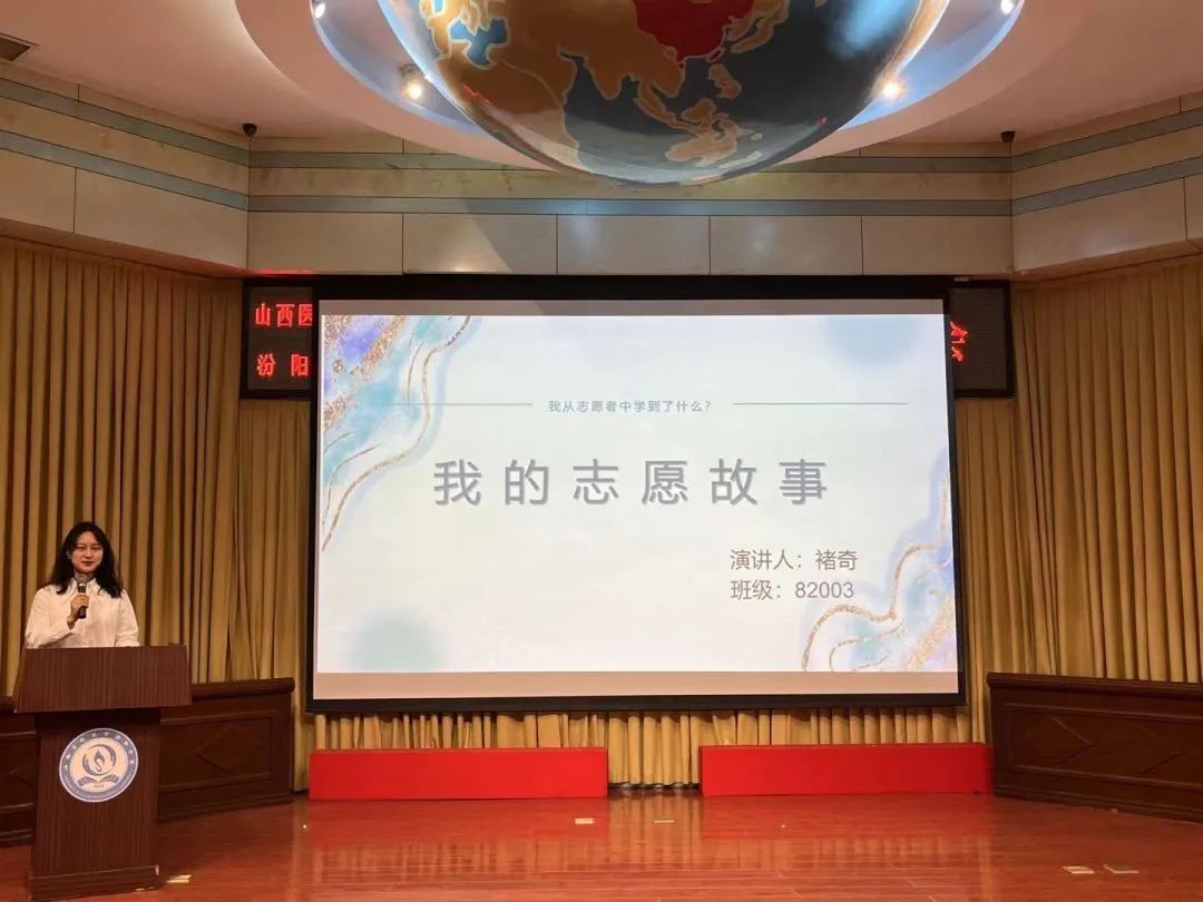 陈陆寒骧同学分享了她为运动员和教练员做后勤保障工作,去“来小驿”为民众服务,跟随老师查房的经历,还介绍了在手术室的所见所闻。在她看来,志愿活动能让医学生们在生活的点点滴滴中,埋下一颗爱与奉献的种子。
