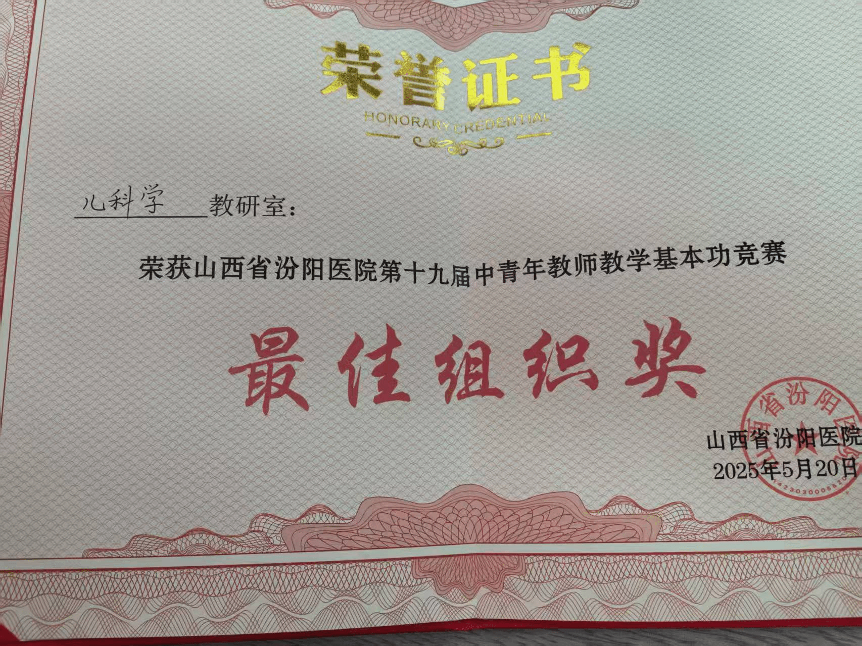 教学方法的改进和多媒体教学设施和网络资源的利用,拓展了教学空间,教学效果有所提高。在教学中贯彻学院“重视实践教学,为基层培养合格的应用型人才”的办学宗旨。在课程选择上对本地区的常见病种重点讲述,为今后服务基层打下好的基础。实习期间对学生的实际操作动手能力和临床思维能力的培养,使学生毕业后到基层服务时能较快独立处理病人。近年来多名教师获校级优秀教师称号,在汾阳学院青年教师讲课比赛中,儿科教研室积极选派教师参赛,获得二等奖、三等奖、优秀奖等荣誉。霍风文青年教师在2020年度山西医科大学附属医院讲课比赛中获得一等奖荣誉。王小爱青年教师于2023年10月荣获山西省汾阳医院住院医师规范化培训教学查房比赛二等奖;于2024年11月荣获山西省首届儿科住院医师教学能力比赛三等奖;于2025年5月荣获山西省汾阳医院第十九届青年教师教学基本功竞赛一等奖、最受学生欢迎奖、最佳教案奖。