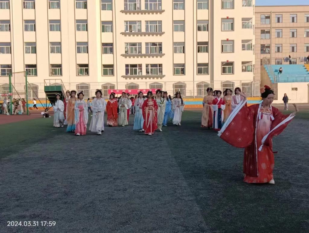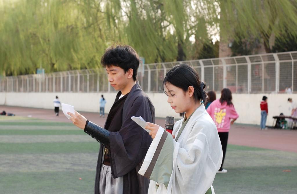 为加深同学们对优秀传统文化的认知,更多机会了解汉服文化,积极参与到优秀传统文化传承中来,3 月 31 日,源启社联合大学生艺术团、韶华社、音乐社在学校操场举办了第四届“以花之茗,品味霓裳”花朝节主题活动。社团指导老师董婧妍和王丽参加了活动。