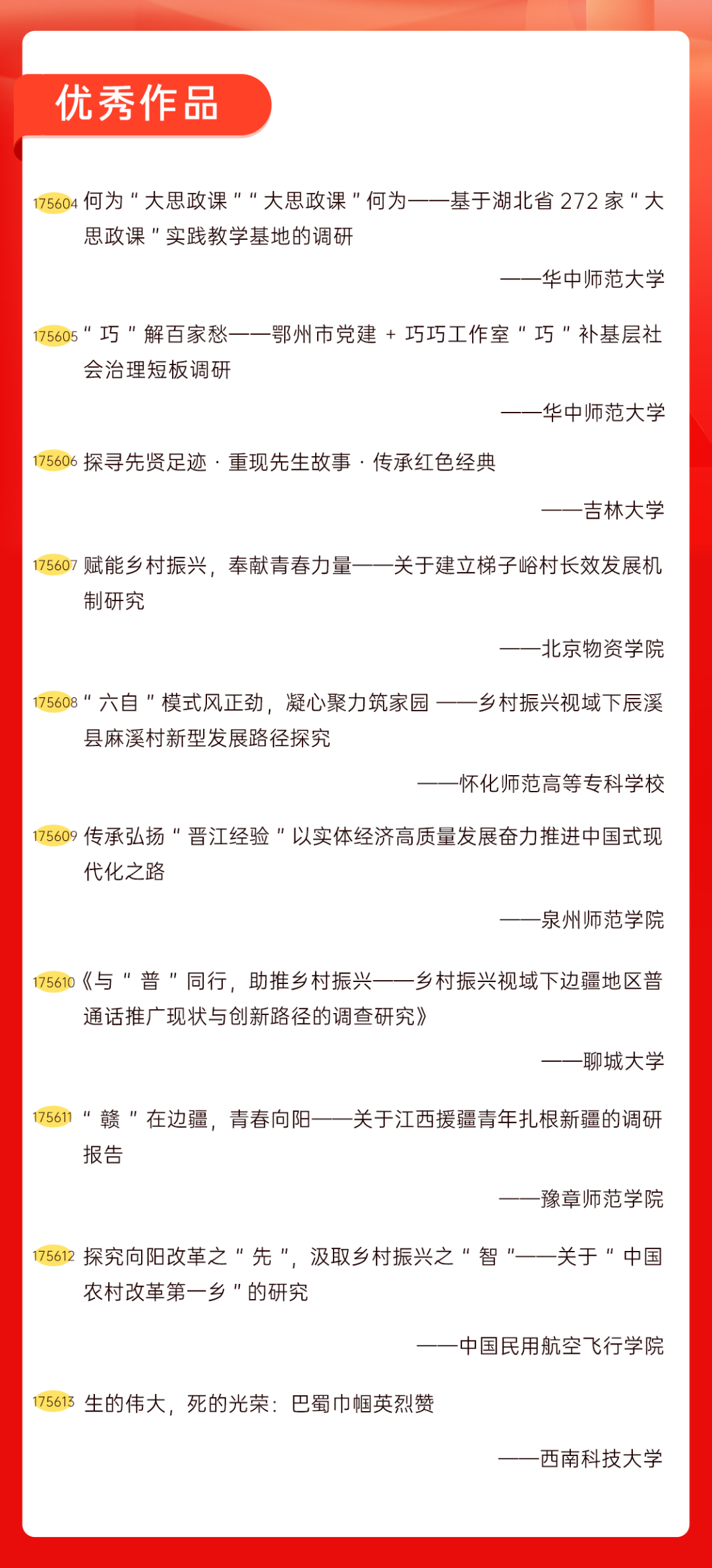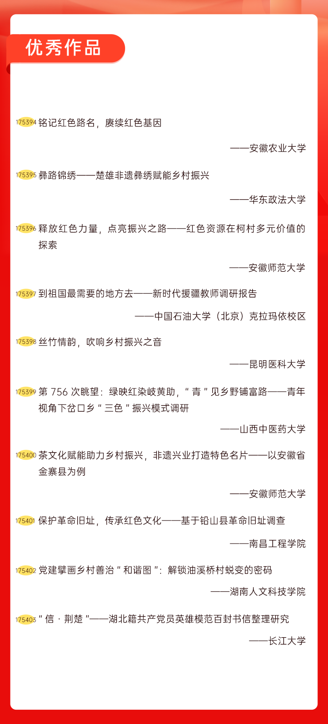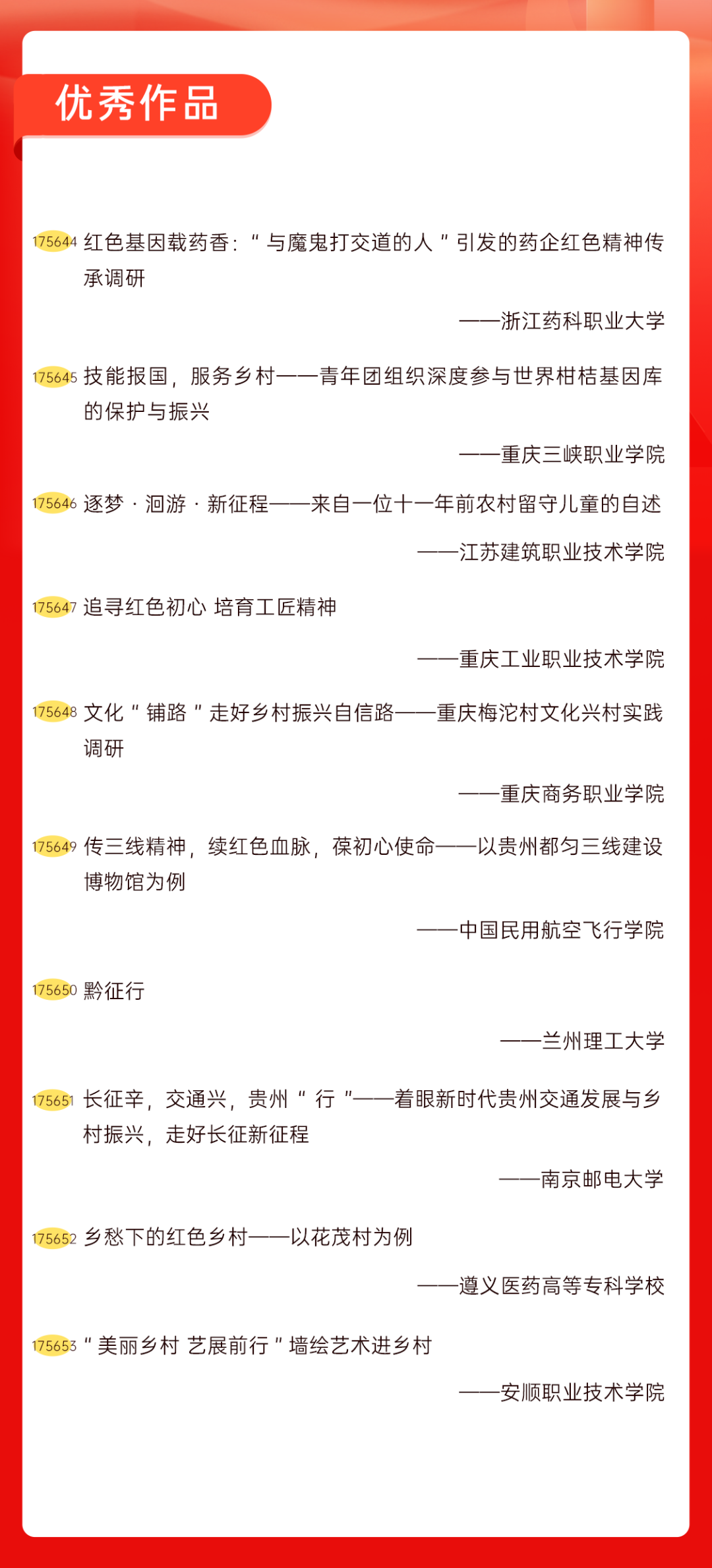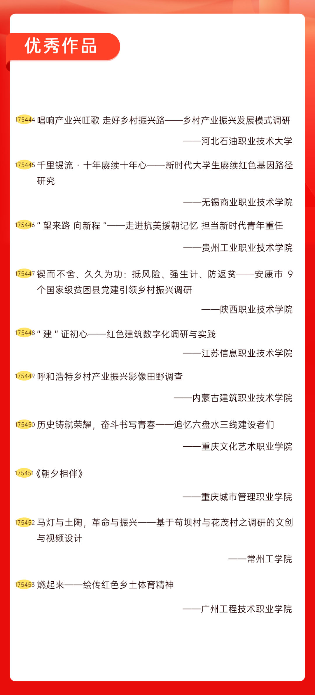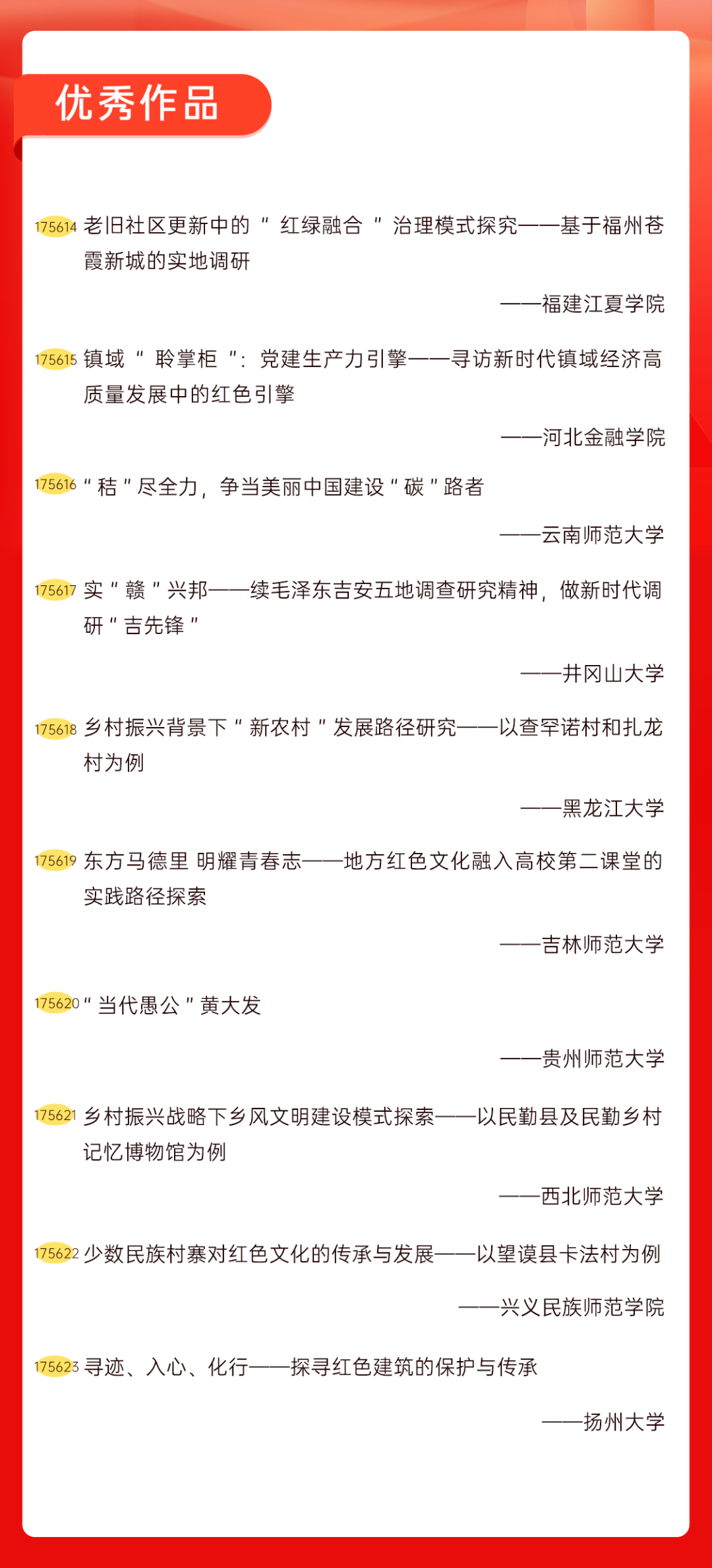 为增加广大青年互动式学习和交流,让青年学生的实践成果形成更广泛的社会影响,辐射带动更多青年学生突破空间限制、感受朋辈风采、传承红色基因,组委会将部分优秀作品建成红色教育的云上“红色课堂”。