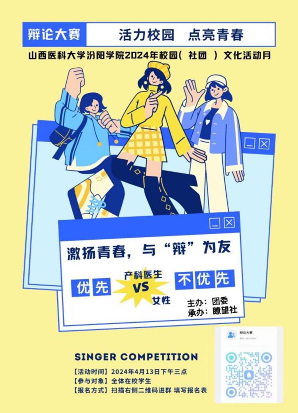 随着社会的发展,学生们在课业之余,需要一些有趣而富有挑战性的活动来提高团队合作能力、思维敏捷性和口才表达能力。校团委瞭望社开展“激扬青春,与辩为友”主题校园辩论大赛,通知如下: