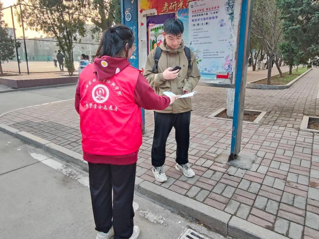 活动过程中,志愿者分工协作,宣讲结核病医学知识、分发传单、引导师生签名。同学们纷纷参与到活动中来。
