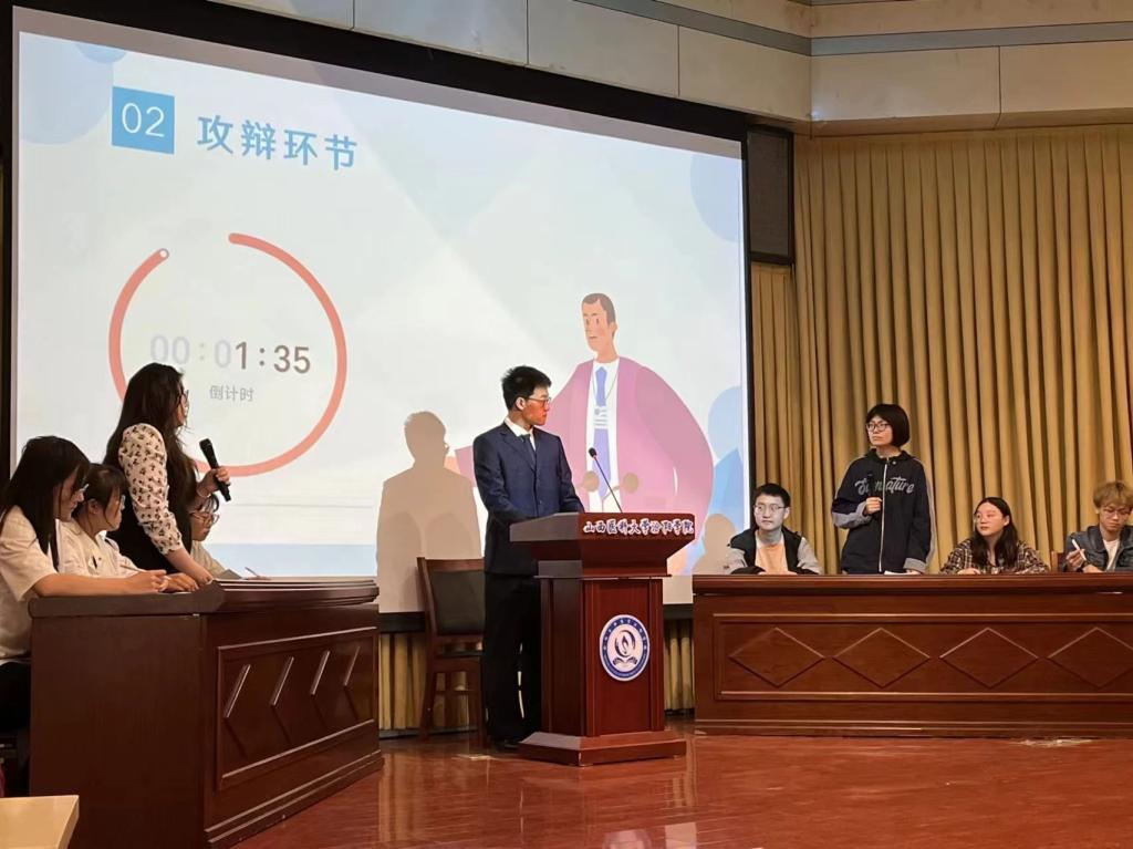 主持人赛前先介绍比赛规则,强调赛场纪律,随后主持人宣布比赛正式开始。正反方选手依次上台落座,个个胸有成竹,意气风发,显然已经做好充分的准备。开篇立论辩手们思路敏捷,言辞犀利,辩论赛现场逐渐呈现出紧张刺激的氛围。到了攻辩环节双方辩手在台上,针锋相对,宛如疾风骤雨般的激烈交锋。提问和回答都像是在进行一场精神上的拔河比赛,每个人都想在气势上占据上风。