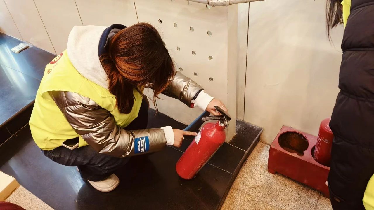 李凯老师向队员们详细讲解了冬季消防安全的重要性及此次巡检注意事项,重点检查了场所内各类电器设备的使用状况,排查线路老化与过载风险,消防通道是否畅通无阻、灭火设施、防火安全提示是否完备有效等。校学生会负责人与场地负责人一同检查。