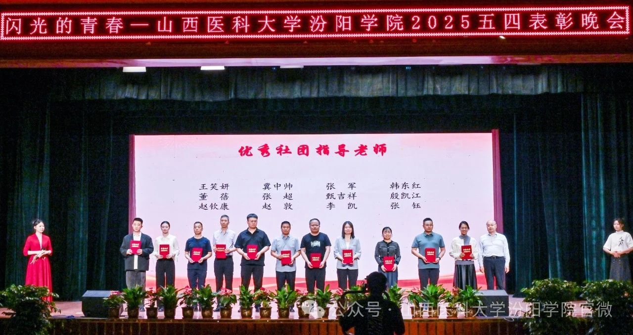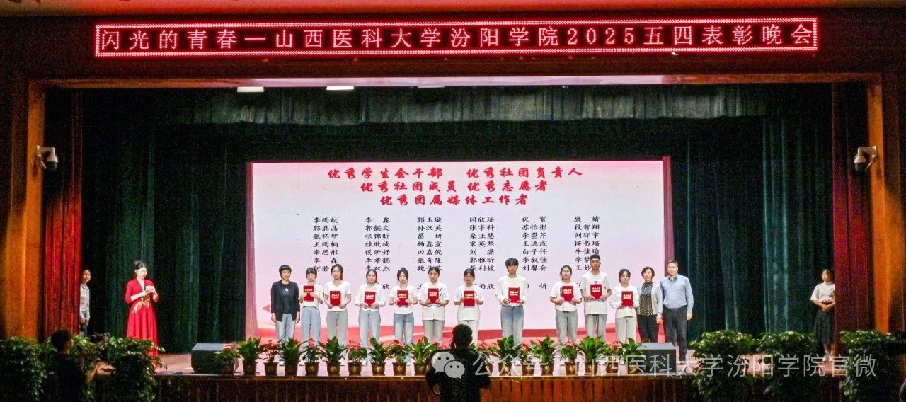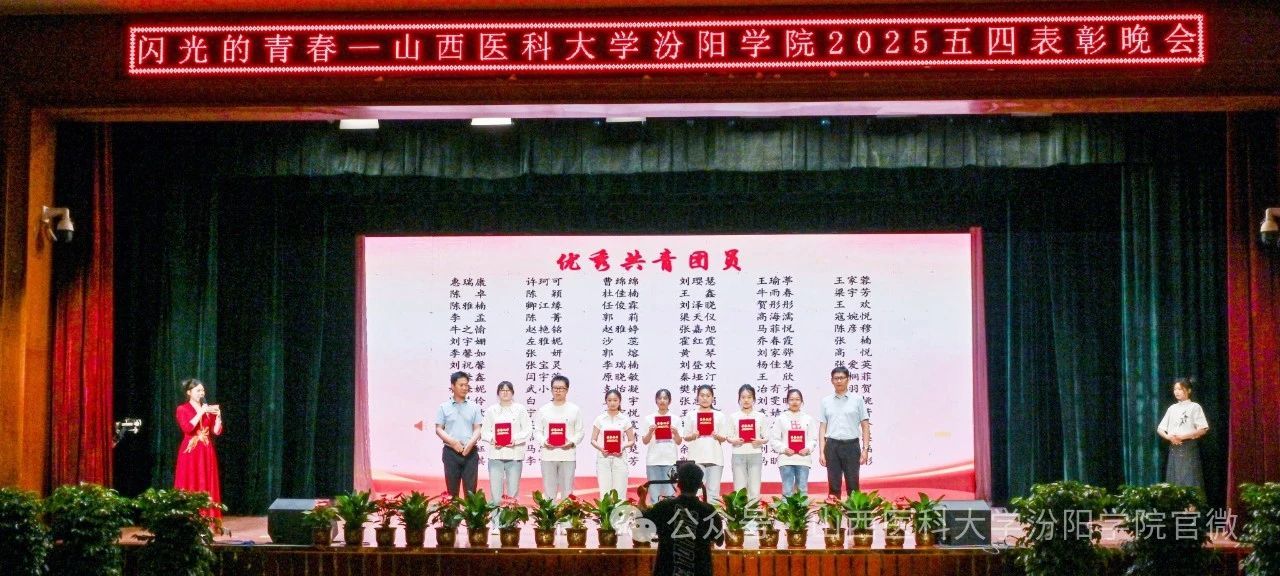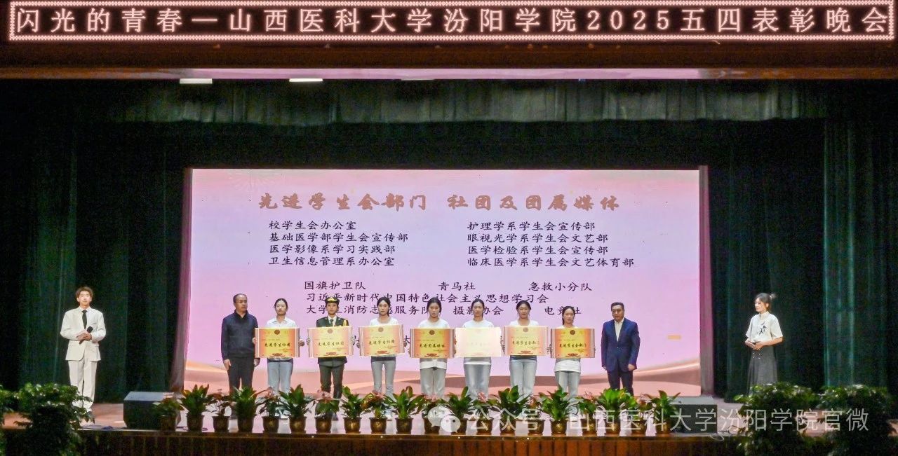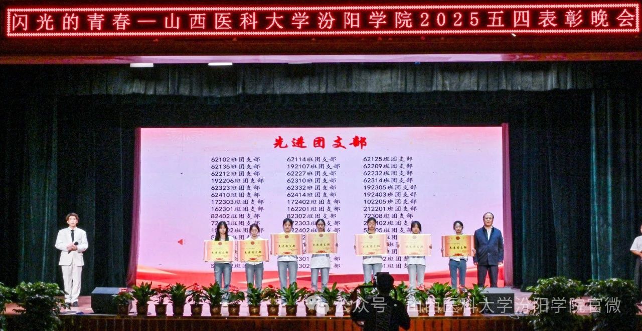 陈振文副院长宣读了《共青团山西医科大学汾阳学院委员会关于2025年五四“先进集体”和“优秀个人”的表彰决定》。SUNBET表彰了1个先进分团委、11个先进团总支、48个先进团支部、4个先进学生会部门、7个先进学生社团、1个先进团属媒体;1名优秀分团委书记、100名优秀共青团干部、356名优秀共青团员、42名优秀学生会干部、1名杰出志愿者、95名优秀志愿者、12名优秀社团指导教师、8名优秀社团负责人、42名优秀社团成员、5名优秀团属媒体工作者。