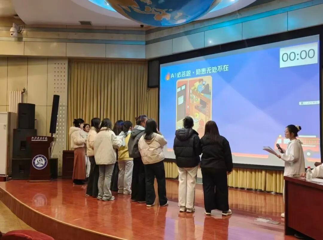 在汾阳校区,消防知识竞赛吸引了多支队伍参与。活动创新采用“必答题-隐患无处不在”“抢答题-真假消防官”“情景题-生死抉择”三个模块进行,比赛内容深度结合校园生活场景,全面考察了同学们的消防知识储备与应急应变能力。决赛现场,各队选手思维敏捷、配合默契,上演了一场精彩纷呈的“最强消防大脑”对决,成功将消防知识学习转变为一场集趣味性、竞技性与教育性于一体的校园盛会。