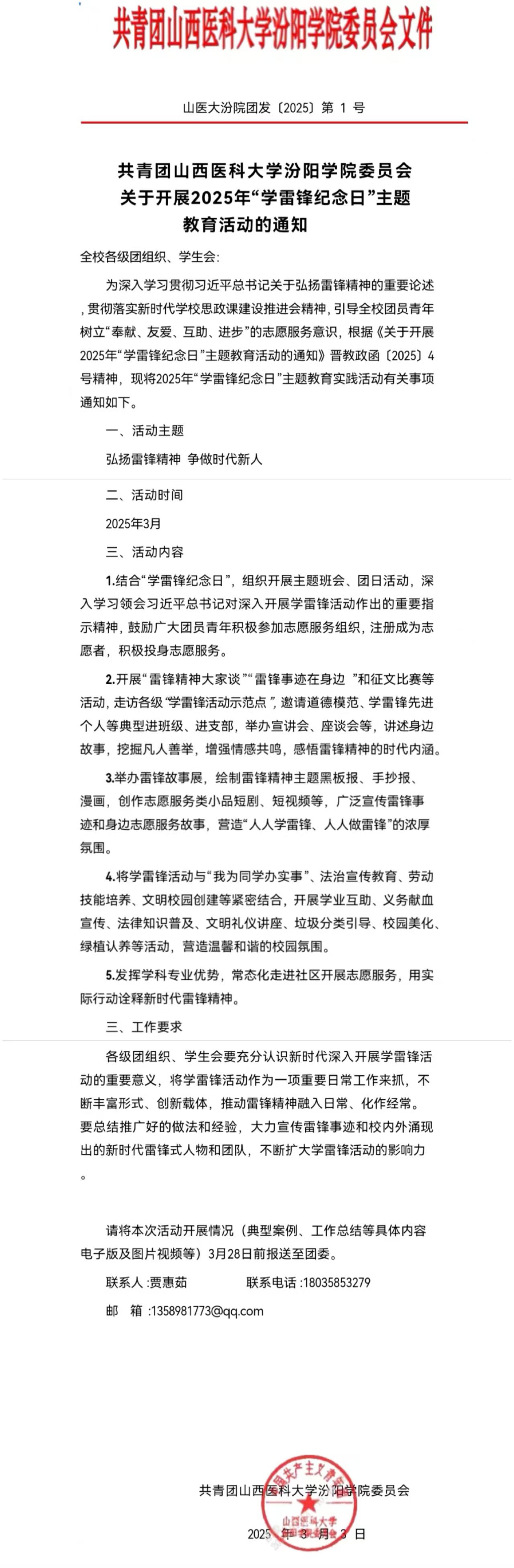 关于开展2025年“学雷锋纪念日”主题教育活动的通知