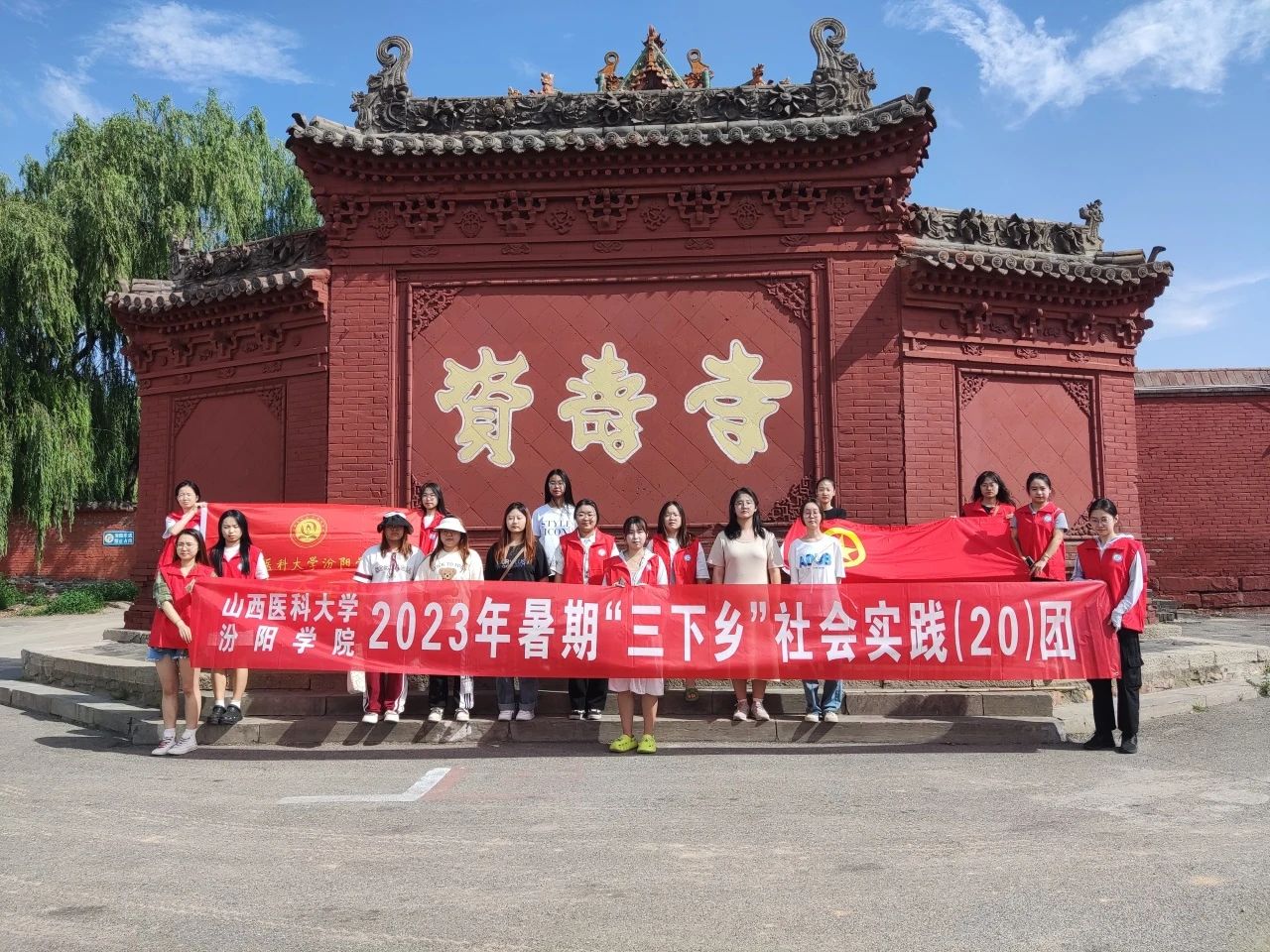 7月9日,村妇联主任任建华代表村委为实践队颁发了锦旗,以表感谢,整个实践队都感受到了当地的乡土气息,人文生活以及当地人民的淳朴和真挚。最后,在队长62103班房品钰的带领下,队员们参观了苏溪村资寿寺,感受三晋古刹胜景。