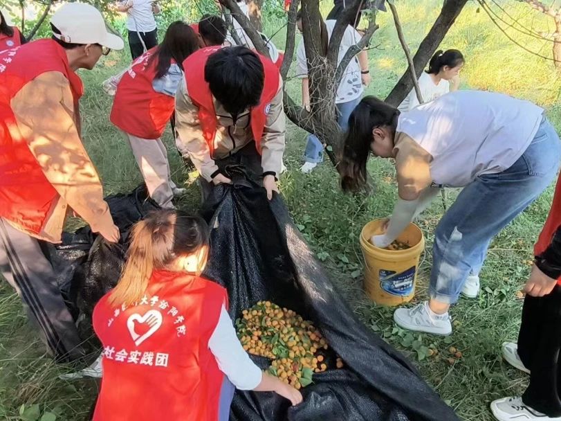 7月17日,灿烂的阳光倾洒在一群朝气蓬勃的年轻人的脸上,我们跟随村民的脚步踏入了杏园,开始采摘熟透的杏儿。大家干劲十足,不一会,便收获满满,推着小推车,载着颗颗“杏”福,满载而归。采摘的是心情,品尝的是自然,收获的是快乐!