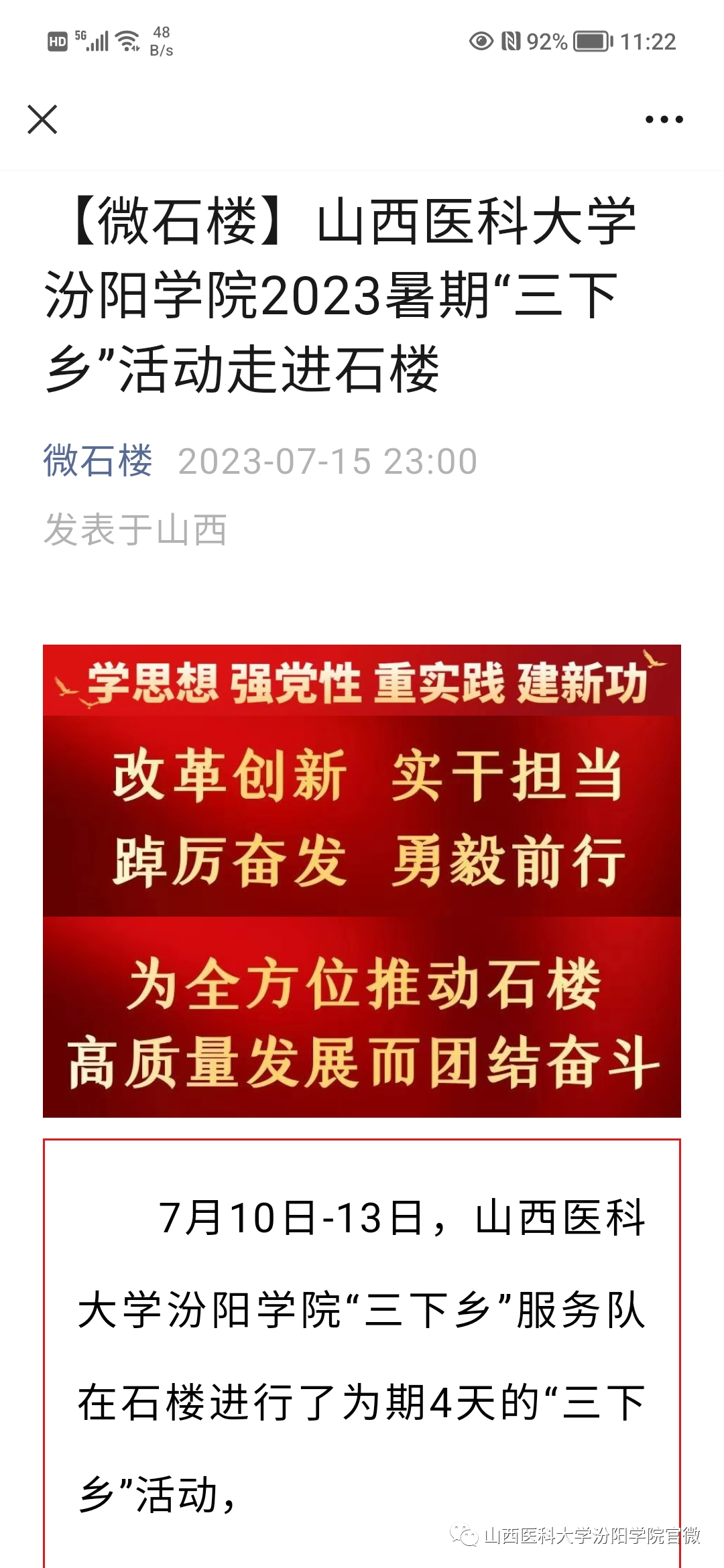 石楼县融媒体中心的微信公众号“微石楼”对SUNBET师生的暑期“三下乡”实践活动进行了报道。