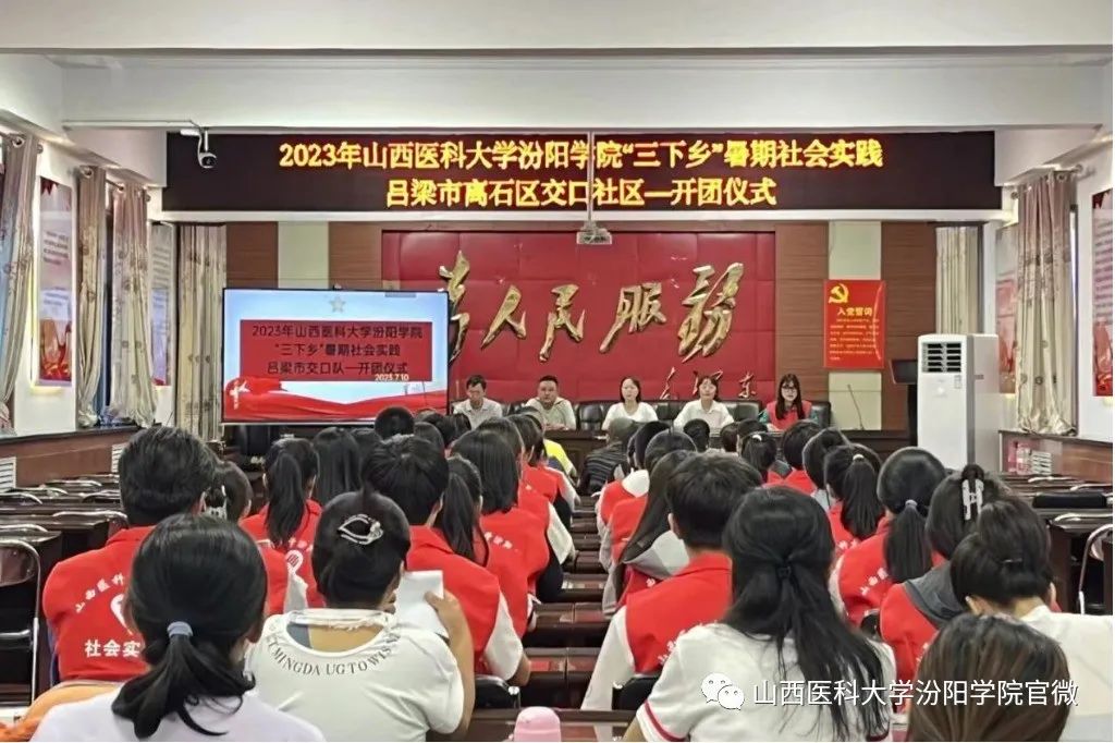 7月10日,离石交口社区实践队在村委会议室举行了开团仪式。交口社区两委班子成员出席,党委副书记付强强进行了讲话,指导教师董婧妍、学生队长曹绵绵进行了发言,付强强书记宣布本次“三下乡”活动正式开始,并在开团仪式结束后进行合影留念。