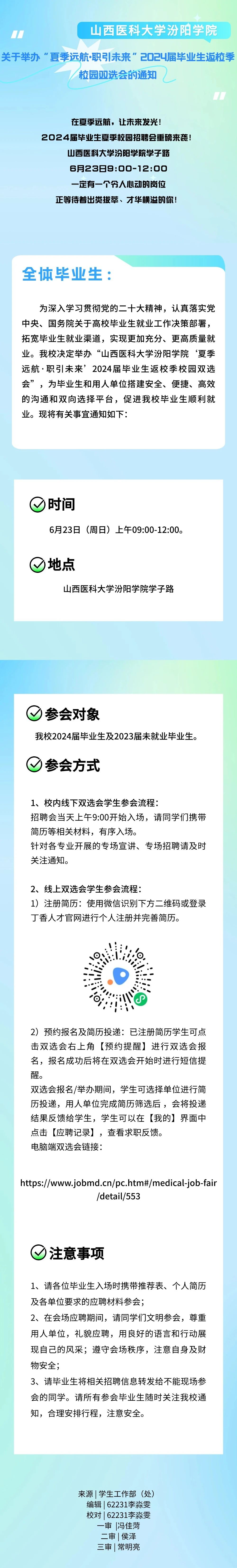 山西医科大学汾阳学院关于举办“夏季远航·职引未来”2024届毕业生返校季校园双选会的通知