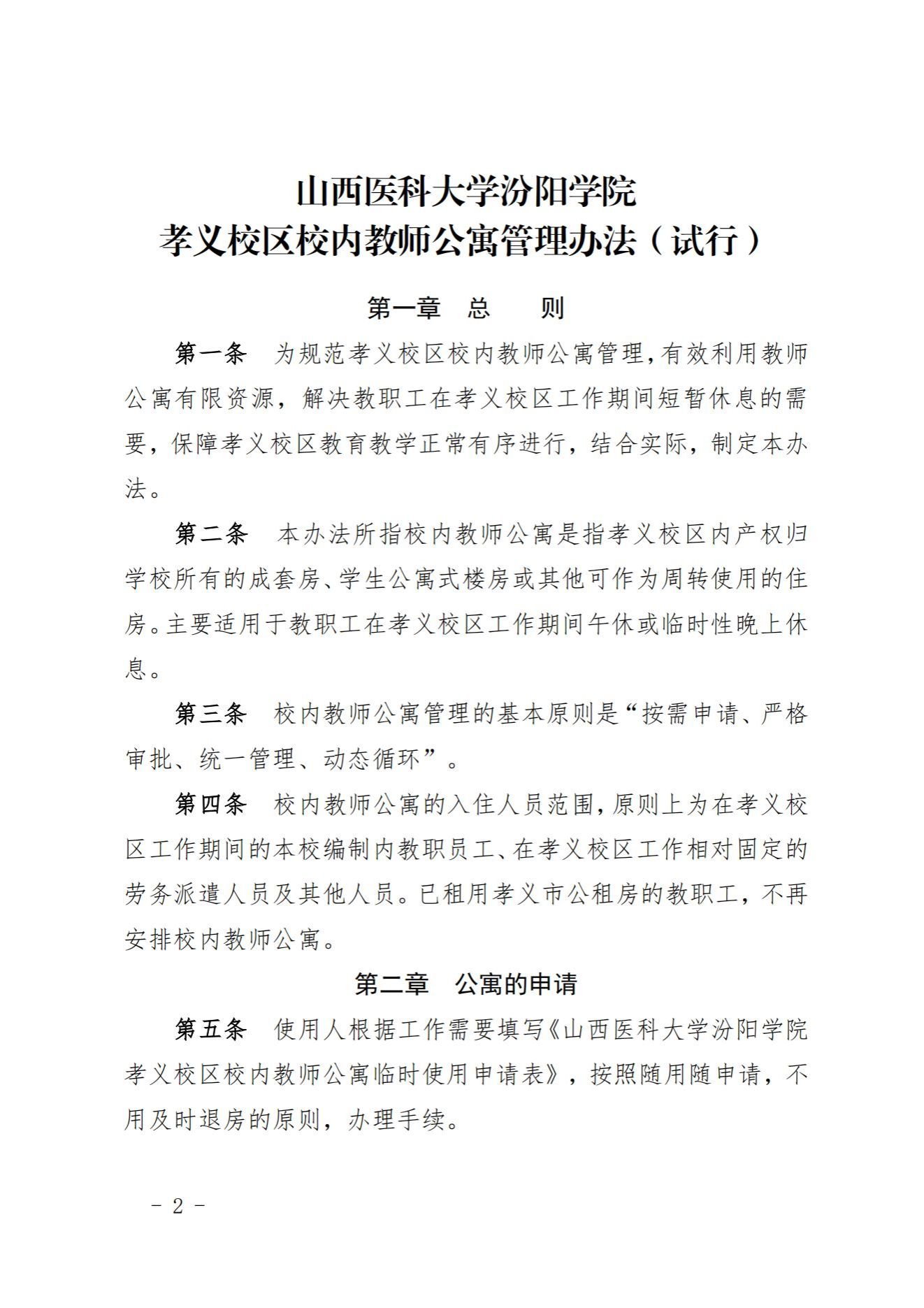 山西医科大学汾阳学院 孝义校区校内教师公寓管理办法(试行)