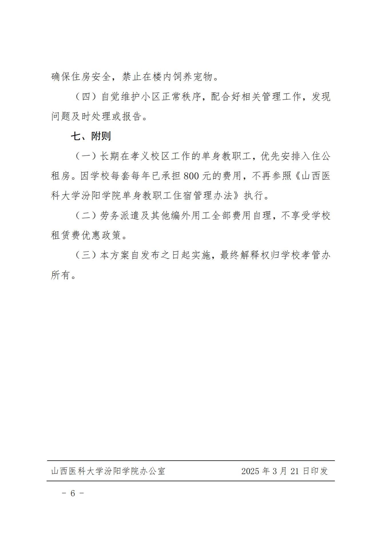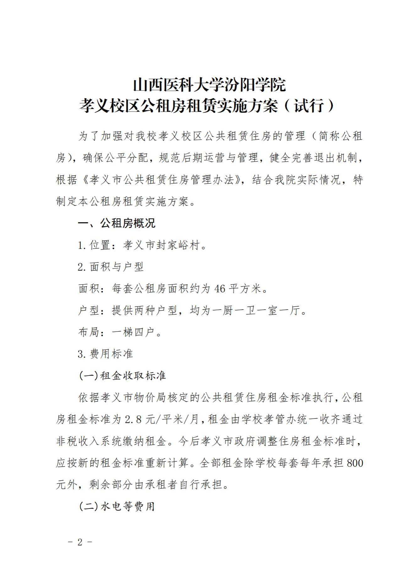 山西医科大学汾阳学院孝义校区公租房租赁实施方案(试行)