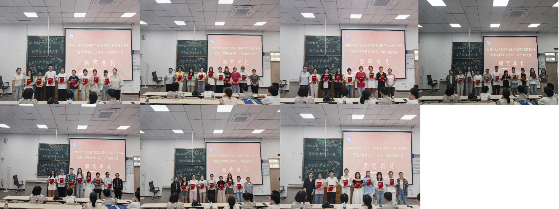 本次大赛分设七个项目组:实验诊断组、形态组、生检组、免检组(参赛学生为722班、s724班);微检组、临检组(参赛学生为723班);化学组(参赛学生为724班)。赛前,各组教师对选手进行操作指导,强化训练,使参赛的同学对实验流程以及比赛内容有了充分的了解和掌握。通过初赛筛选,共确定109名学生参加各项目组的决赛。