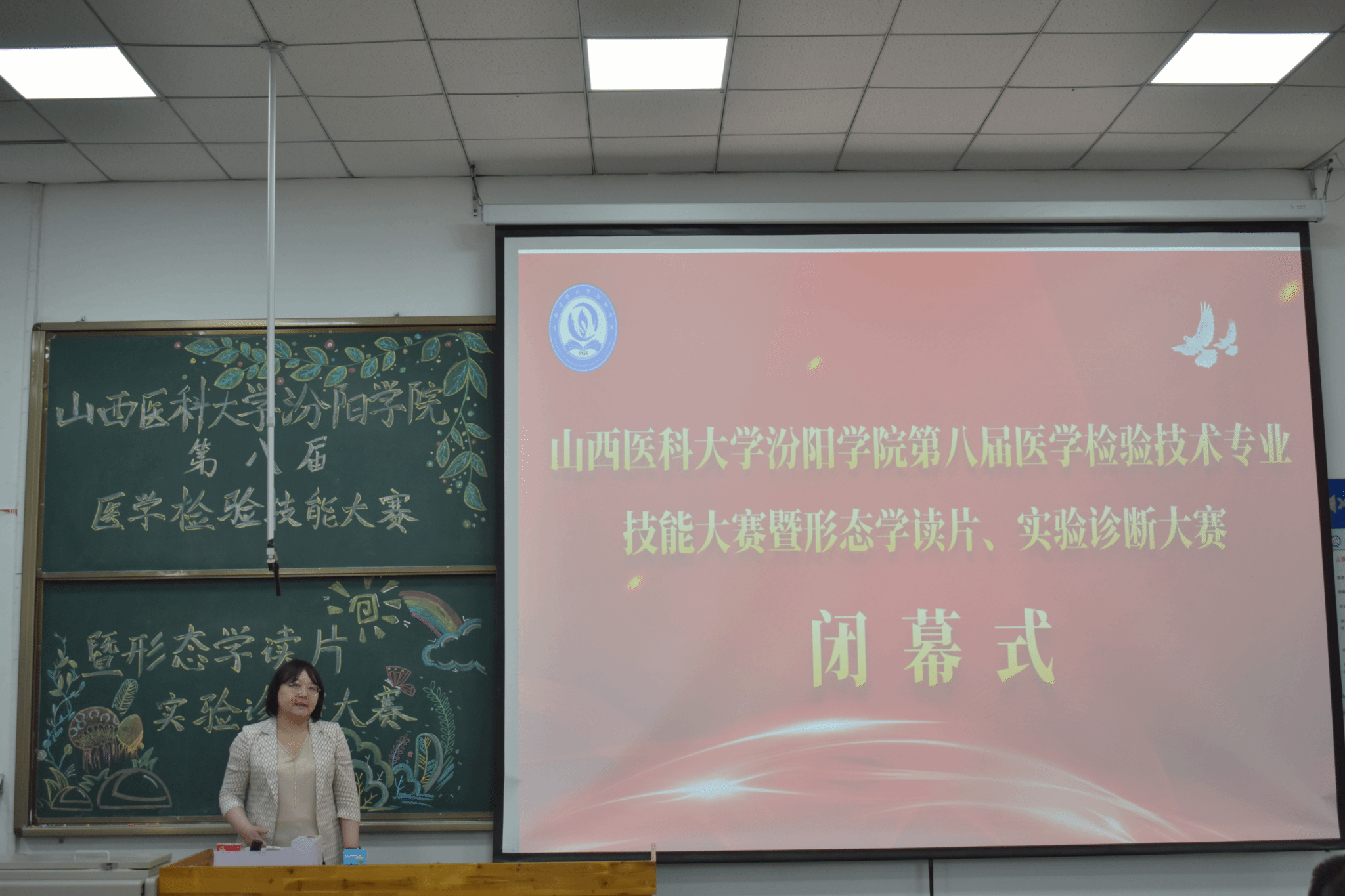 最后,医学检验系主任张晓延总结讲话。她对全体师生和工作人员赛前赛中的辛勤付出表示衷心的感谢。她指出,通过比赛同学们的专业素养、技能水平和综合素质得到了显著提升,并且在历练中获得了成长。同时,老师们也通过大赛获得了教学改革的新思路。她勉励师生在今后的学习和工作中要发扬比赛中表现出的拼搏精神和严谨作风,推动医学检验系教育教学工作跨上新的更高的台阶。